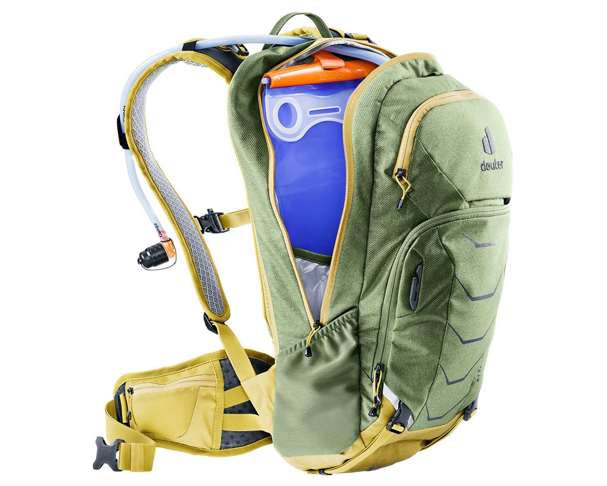 Deuter Attack 16 khaki-turmeric — сучасний захисний рюкзак, створений для гірських байкерів, які ставлять безпеку та комфорт на перше місце. Завдяки багатошоковому знімному протектору спини SAS-TEC, сертифікованому TÜV/GS, він забезпечує ефективний захист від ударів і зменшує ризик травм навіть на найскладніших трасах.