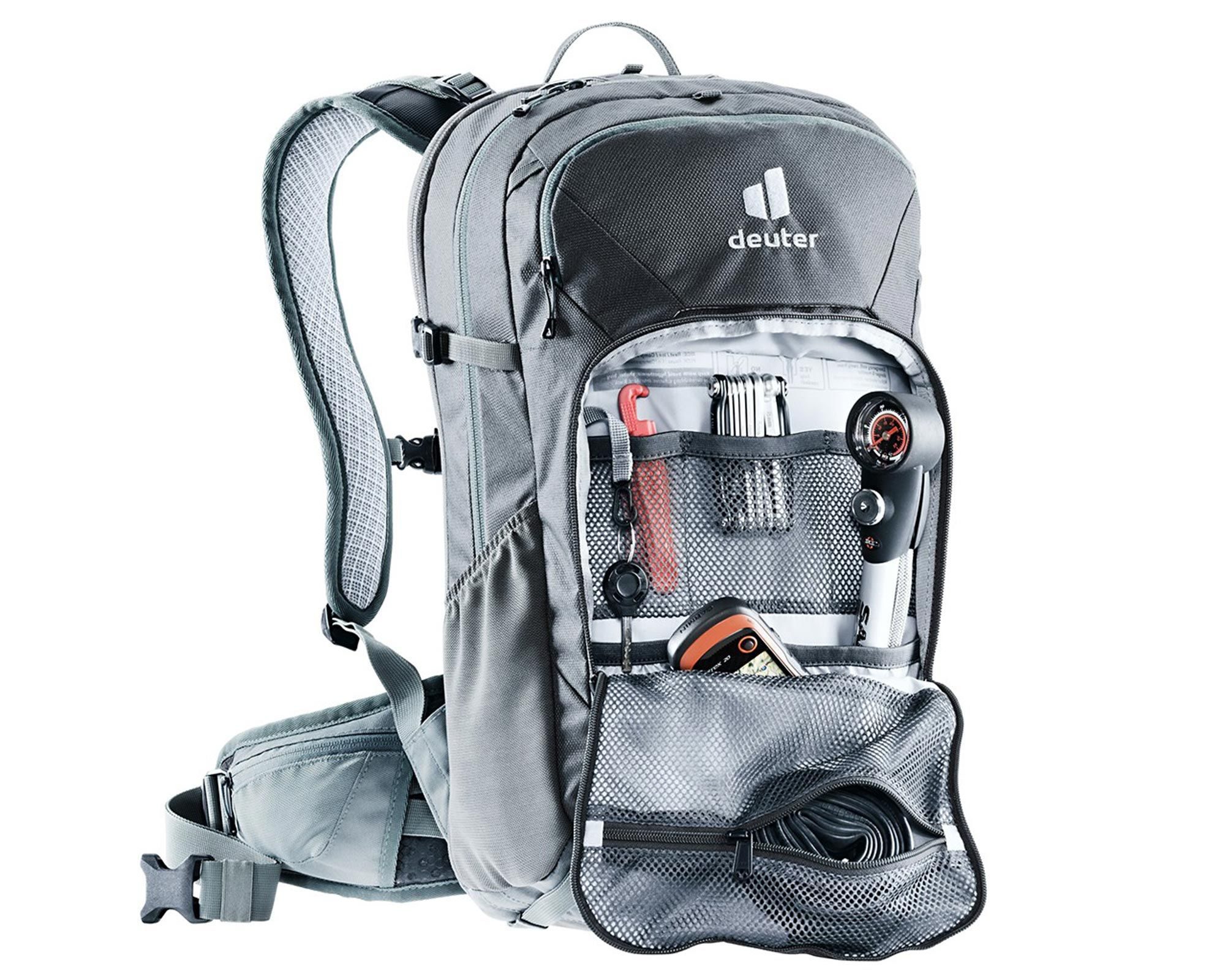 Deuter Attack 20 graphite-shale — технологічний захисний велорюкзак, розроблений для складних гірських маршрутів та екстремального катання. Його основою є знімний протектор SAS-TEC із багатошоковим захистом, сертифікований TÜV/GS, який ефективно знижує ризик травм під час падінь.