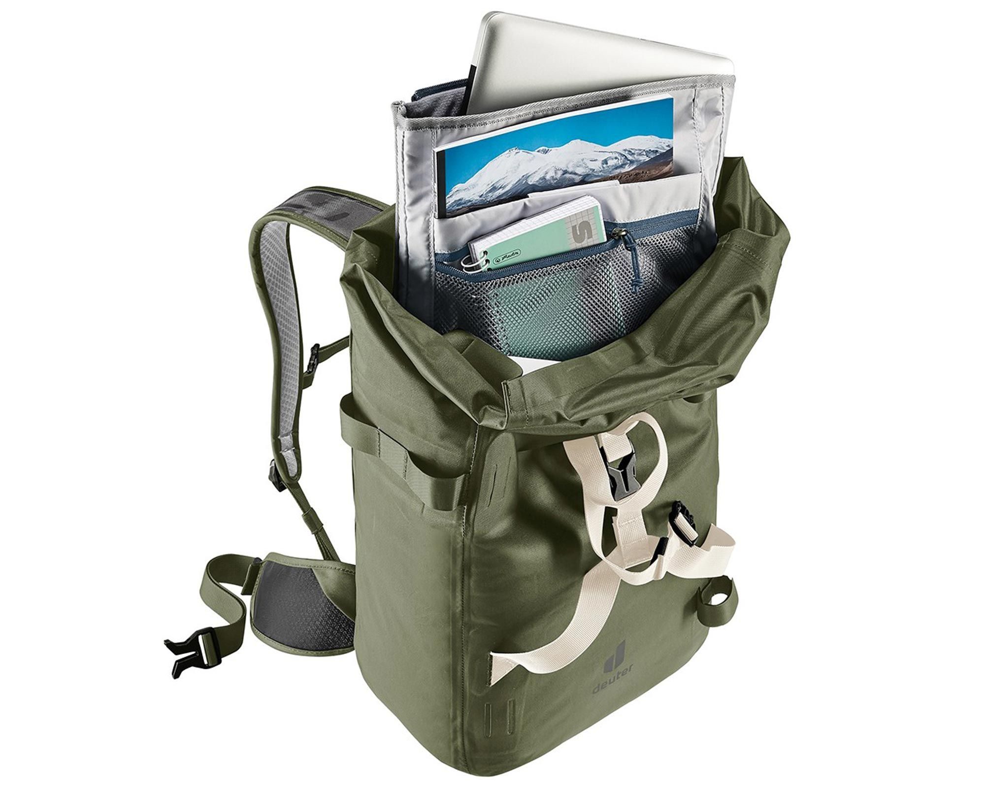 Deuter Amager 25+5 khaki — стильний та функціональний рюкзак для міста і щоденних поїздок велосипедом. Він виготовлений із водонепроникної тканини без PFC та оснащений системою Deuter Airstripes зі сіткою Air Spacer, яка забезпечує оптимальну вентиляцію спини і комфорт під час руху.