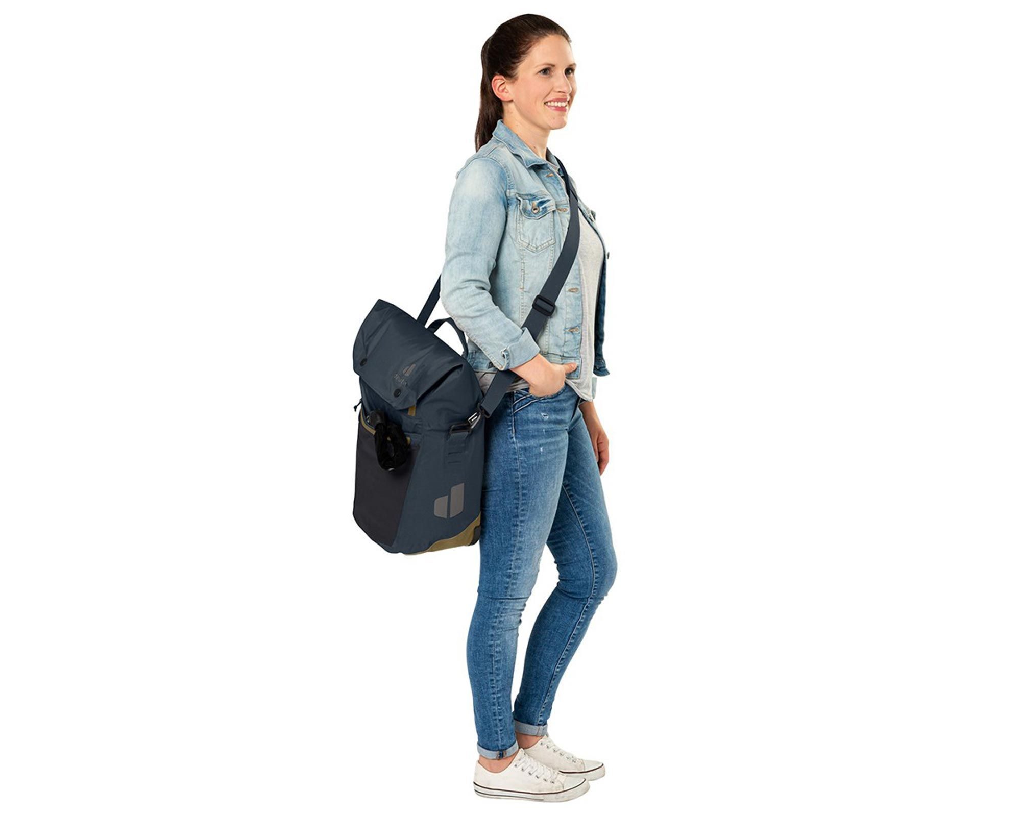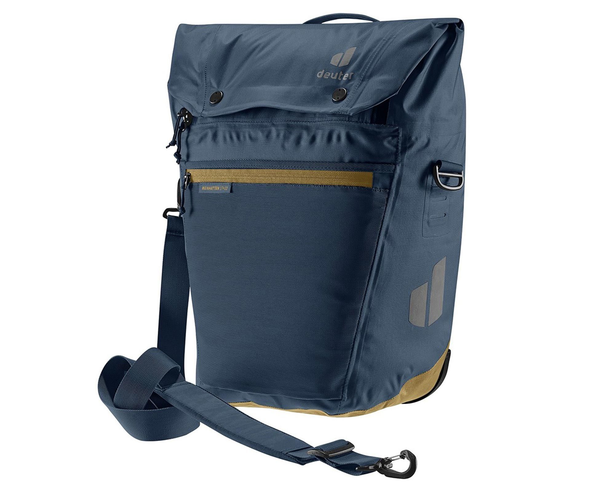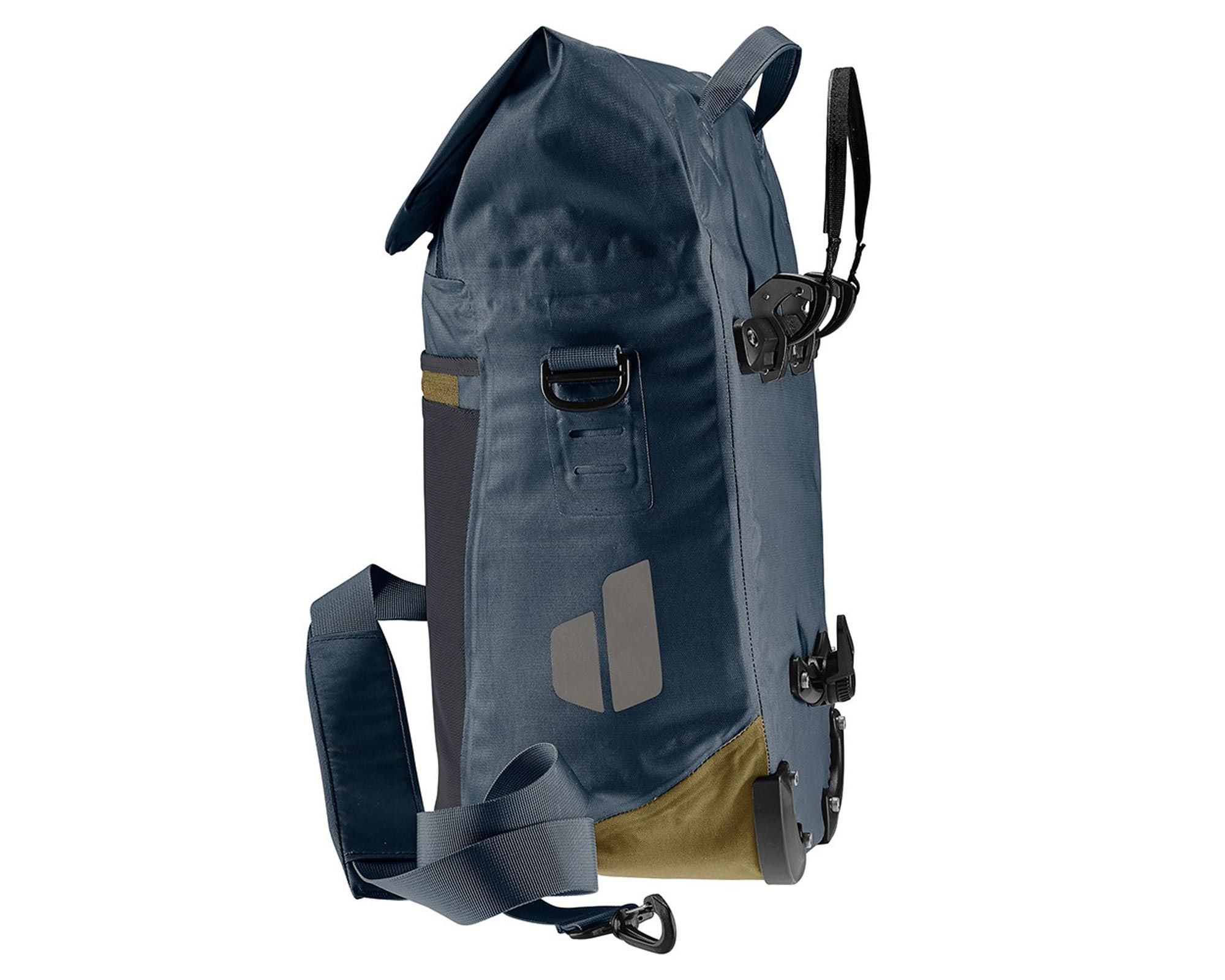 Deuter Mainhattan 17+10 ink-clay — це універсальний велосипедний кофр, який стане надійним помічником у місті та подорожах. Завдяки інноваційній системі BagFix він швидко й надійно кріпиться на велосипед, знімаючи навантаження зі спини. Одним рухом сумку можна від’єднати та використовувати як стильну сумку через плече завдяки знімному плечовому ременю.