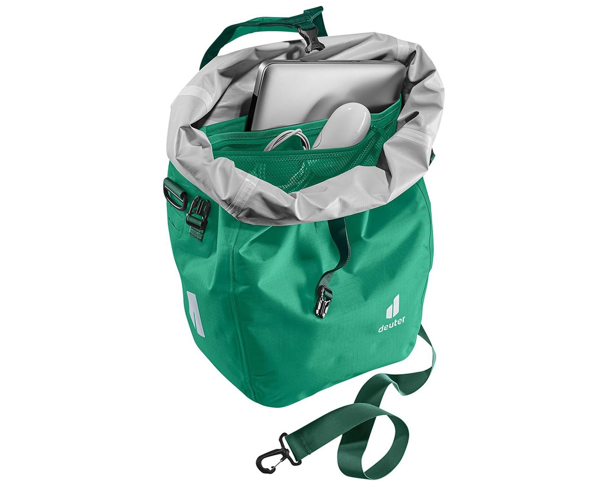 Інноваційна система BagFix забезпечує стабільне кріплення сумки на багажнику, розвантажуючи спину велосипедиста. Сумку можна швидко від’єднати одним рухом і носити як сумку через плече, використовуючи знімний ремінь. Об’єм регулюється з 25 до 30 літрів завдяки верхній кришці, що закручується, з двосторонньою блискавкою. Регульована ручка дозволяє закріплювати додаткове спорядження, наприклад, килимок або куртку.