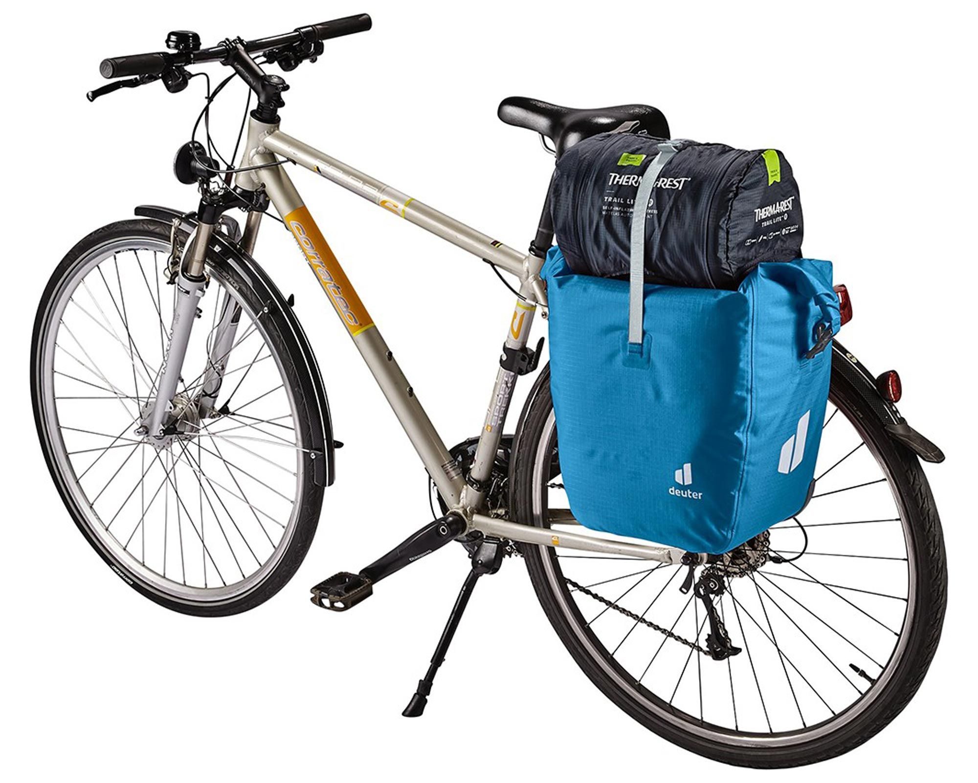 Deuter Weybridge 25+5 reef — надійна та функціональна водонепроникна сумка для велосипеда, створена для поїздок у будь-яку погоду. Міцний поліестер 600D захищає вміст від дощу, бризок і пилу, а посилене дно забезпечує довговічність використання.