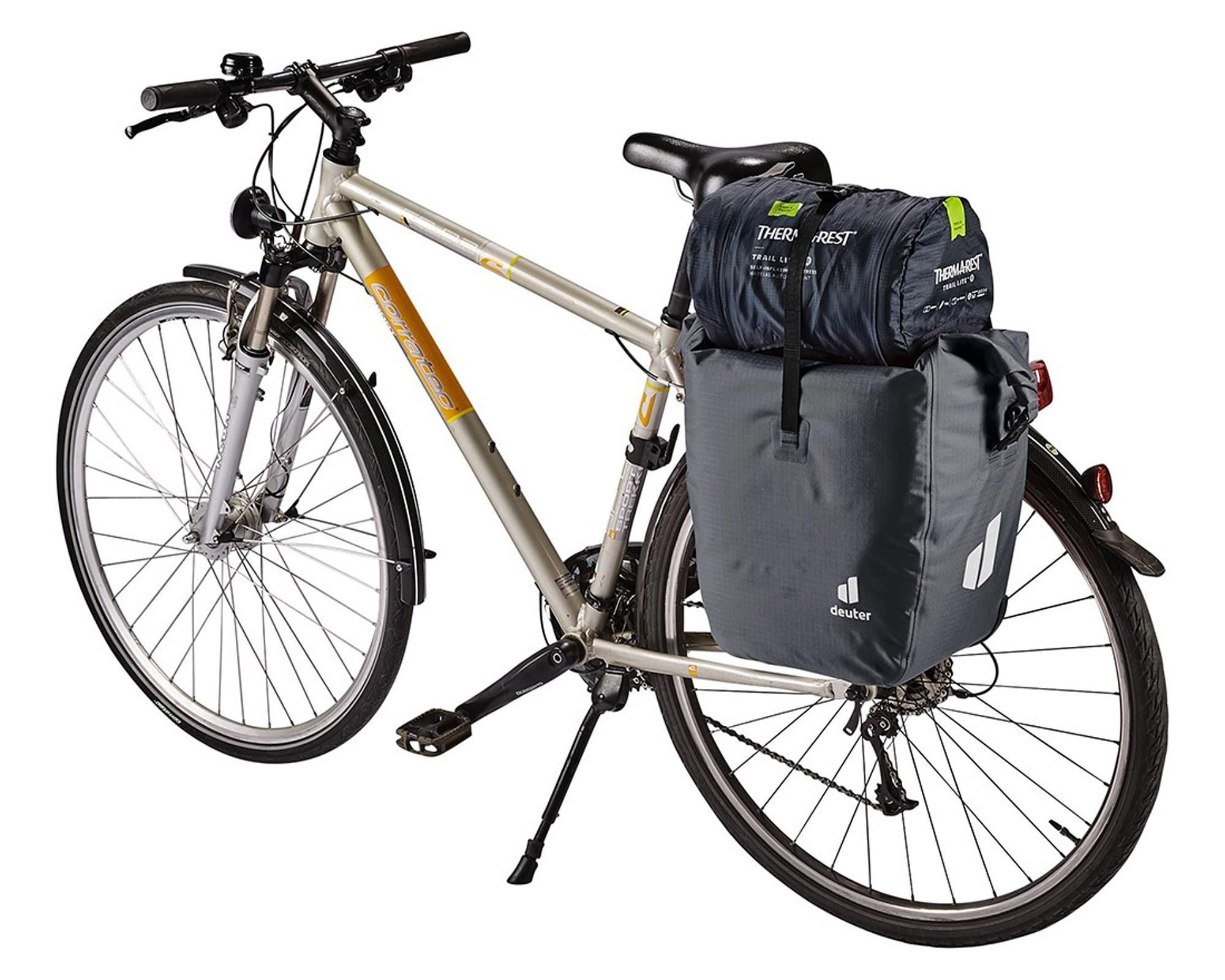 Deuter Weybridge 25+5 graphite — функціональна та надійна водонепроникна сумка для велосипеда, розроблена для комфортних поїздок у будь-яку погоду. Міцний поліестер 600D захищає вміст від дощу, бризок та пилу, а посилене дно гарантує довговічність.
