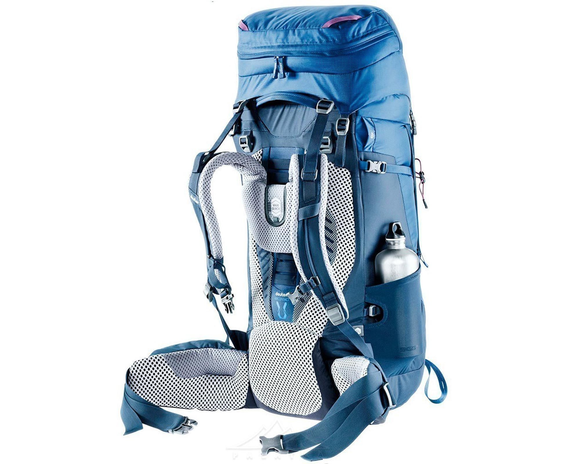 Deuter Aircontact 50 + 10 steel‑midnight — жіноча модель SL‑fit, адаптована до особливостей фігури та рухових пропорцій. Система Aircontact з макропоролоновими подушками забезпечує щільний контакт і вентиляцію спини, мінімізуючи втому навіть у довготривалих походах.