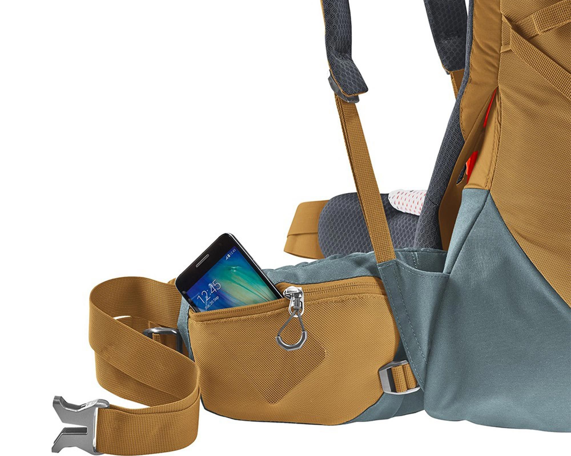 | Особливості | Front‑U доступ, zip‑divider, знімні hip‑кишені (3 л), rain‑cover, lid → day‑pack, hydration‑сумісність до 3 л, pole/ice‑axe loops, SOS‑лейбл |