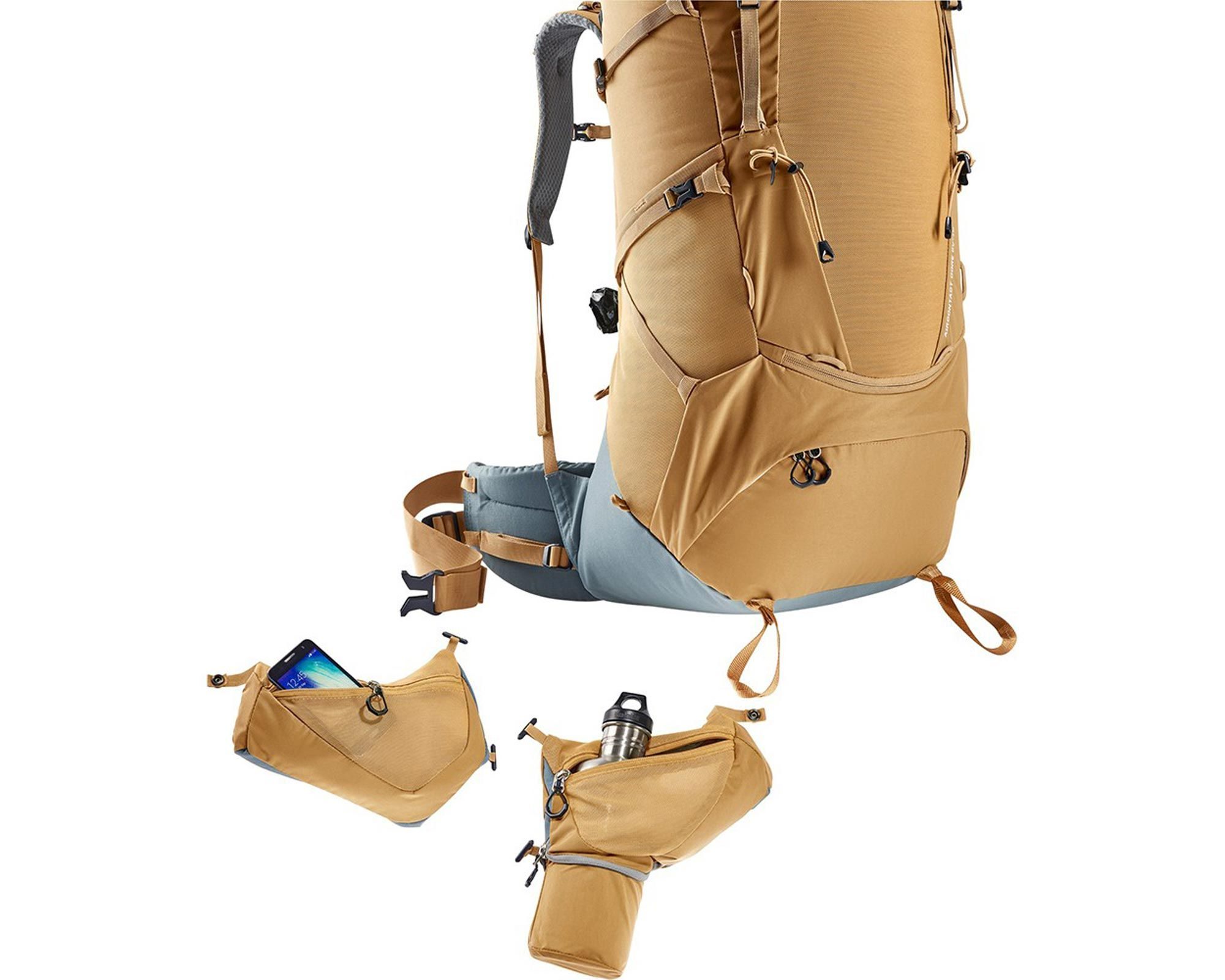 | Особливості | Front‑U доступ, zip‑divider, знімні hip‑поясні кишені (~3 л), rain‑cover, lid‑day pack, hydration‑сумісність до 3 л, ice/pole loops, SOS‑маркування |