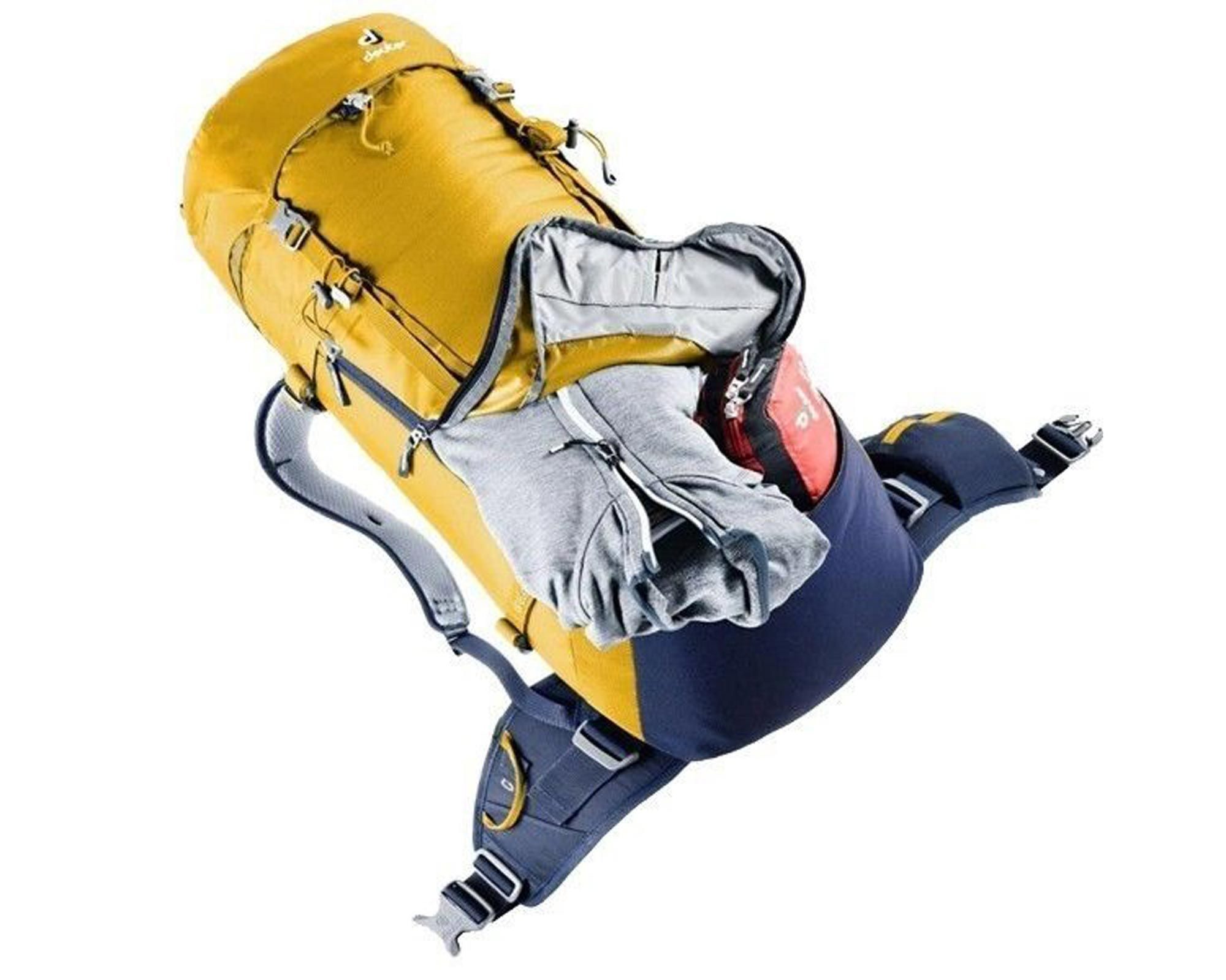 Deuter Guide 34+ curry-navy — надійний штурмовий рюкзак для сходжень, альпінізму та скітурів. Завдяки системі Alpine System рюкзак щільно прилягає до спини, забезпечуючи стабільність і рівномірний розподіл ваги навіть на складних ділянках рельєфу.