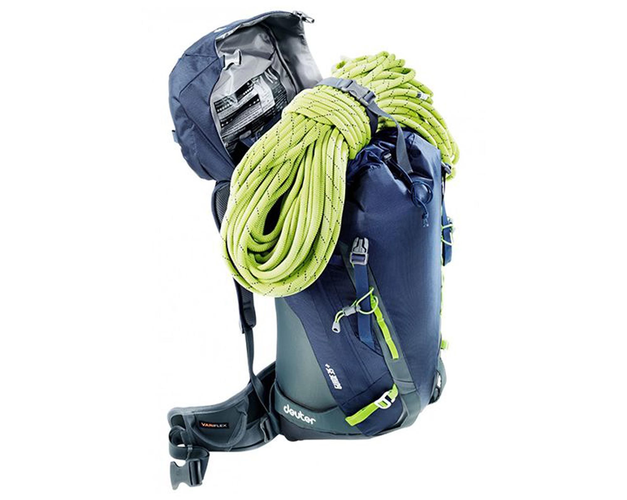 Рюкзак оснащений кріпленням для льодоруба, посиленими бічними тримачами для лиж, компресійними стропами, що можна перестібати спереду, і знімним ремінцем для мотузки. Для зручності також є знімний килимок-сидушка, посилена ручка для підняття та піктограми SOS. Петлі дозволяють встановити опціональний тримач для шолома.