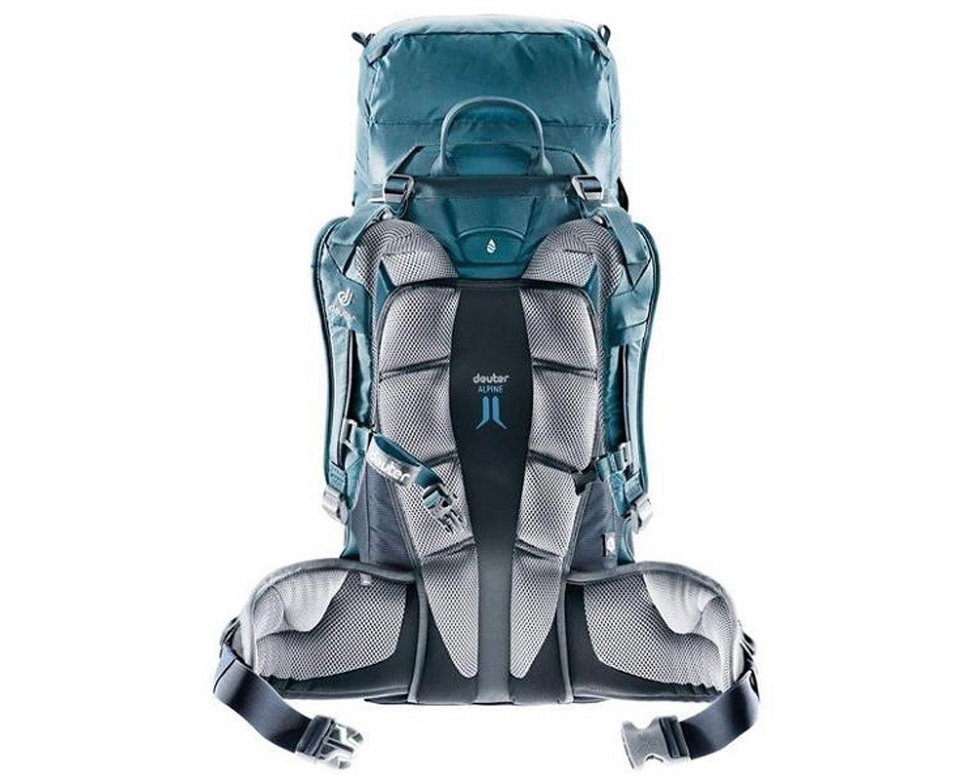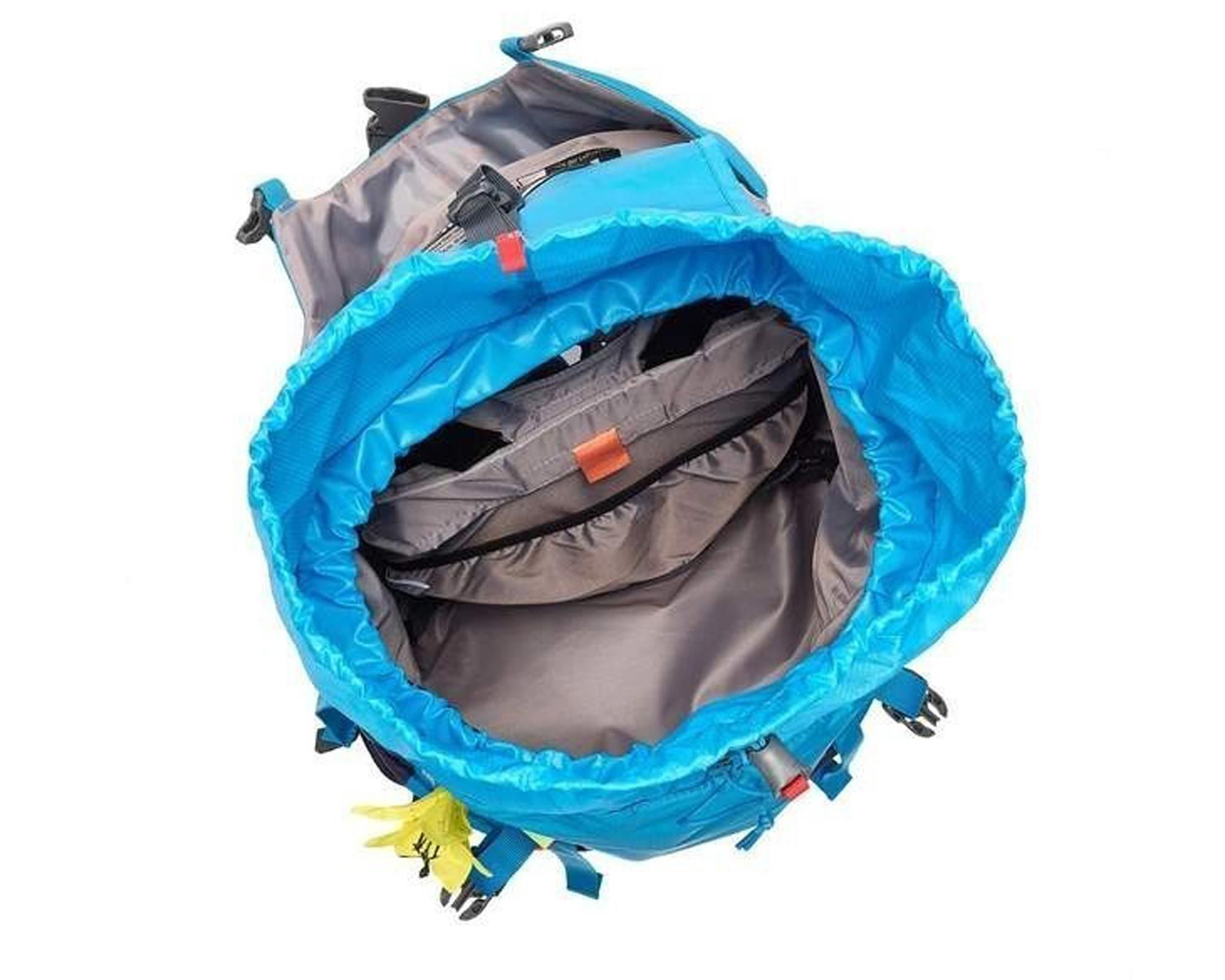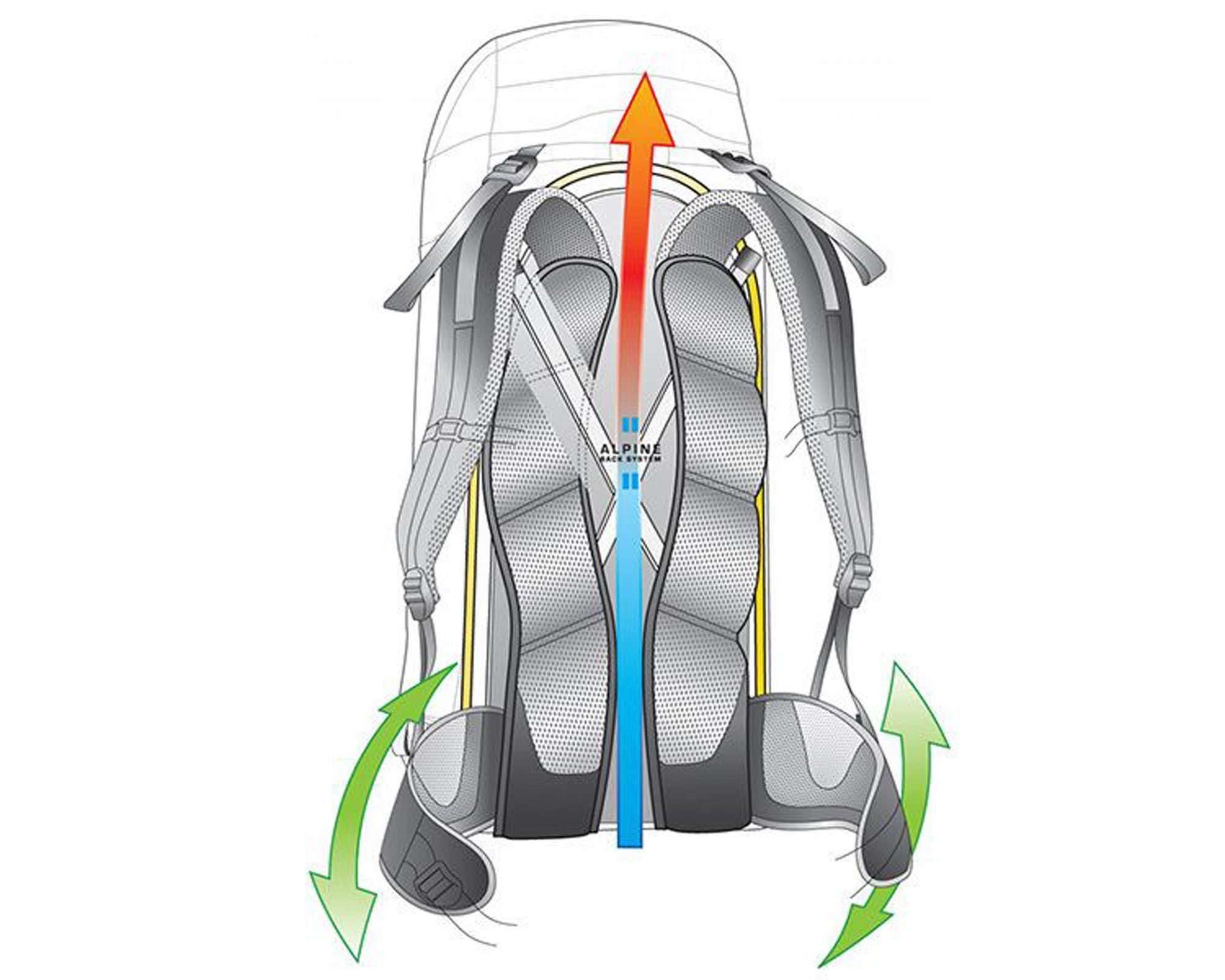 Система Alpine Back із Х-подібним алюмінієвим каркасом рівномірно розподіляє навантаження та дозволяє зберігати свободу рухів. Знімні крила пояса VariFlex, стропи-стабілізатори та нагрудний ремінь із плавним регулюванням забезпечують додатковий комфорт. Доступ до спорядження можливий через бокову блискавку з автоблокуванням.