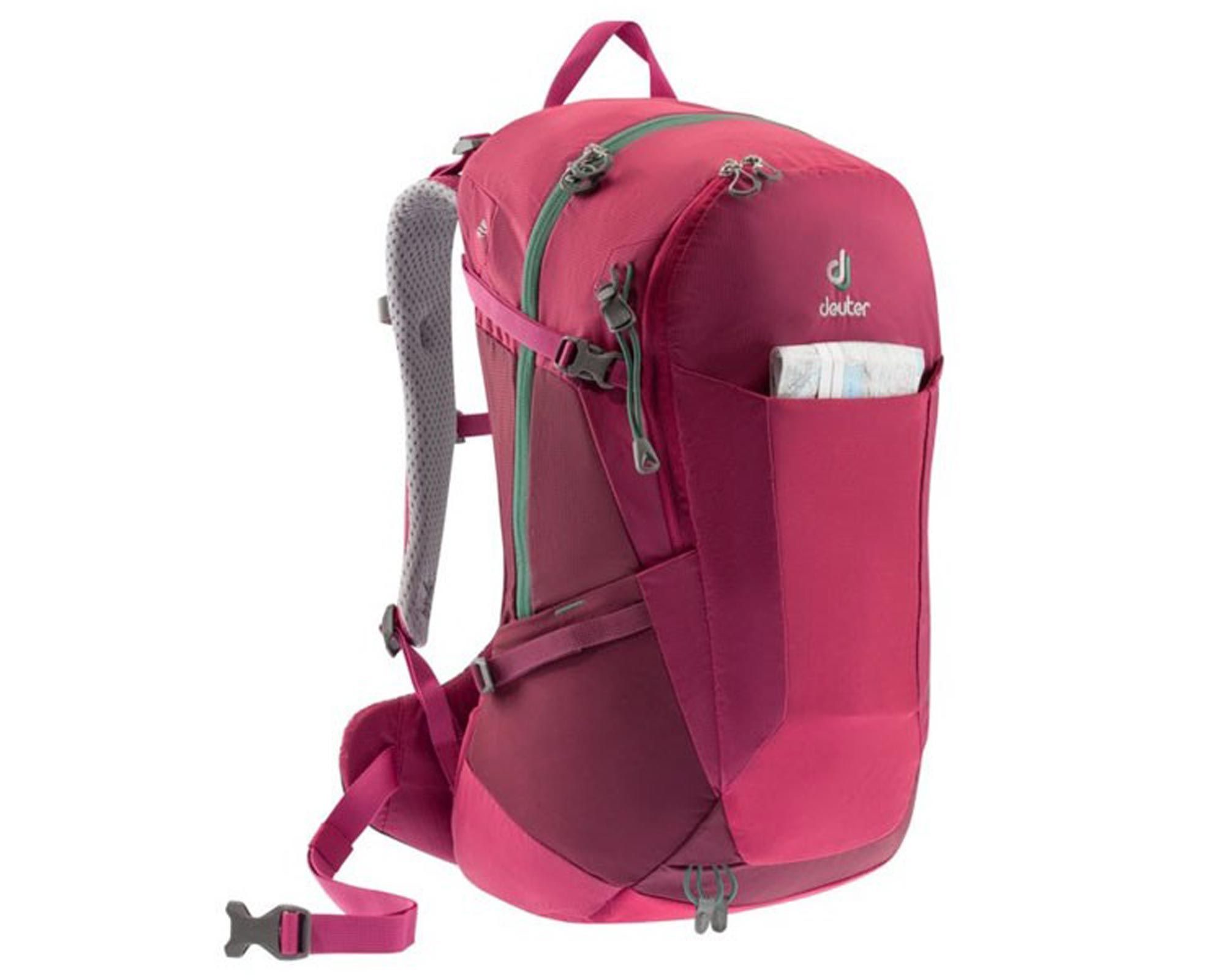 Deuter Futura 22 SL у кольорі ruby-maron — це жіночий рюкзак для одноденних походів, міських прогулянок та подорожей. Модель має конструкцію SL, розроблену з урахуванням жіночої анатомії: коротша спинка, вужчі плечові лямки та конічний пояс забезпечують ідеальну посадку та комфорт протягом дня.