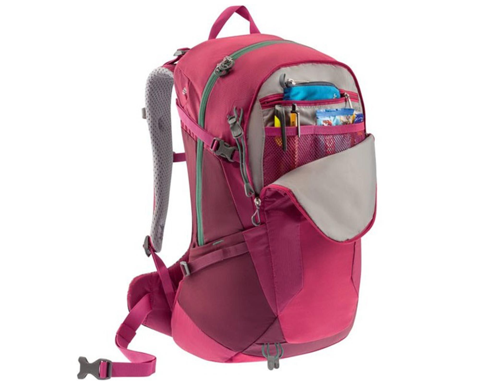 | Особливості | жіноча анатомічна конструкція SL, система вентиляції Aircomfort Sensic, еластичні бокові та фронтальна кишеня, внутрішні відділення для цінних речей, відділення для мокрих речей, знімний дощовик, сумісність з гідратором, нагрудний ремінь, поясний ремінь з технологією Pull-Forward, мітка SOS |