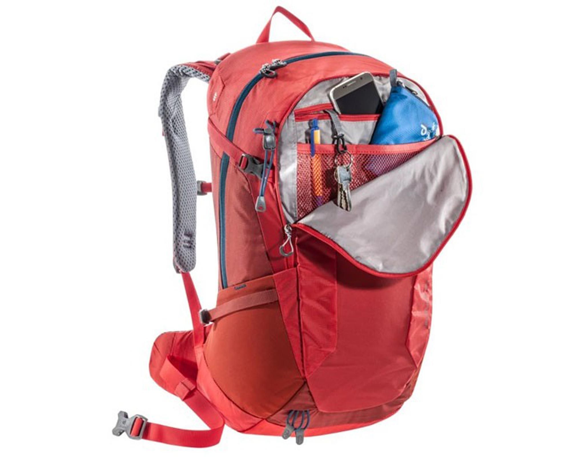 Deuter Futura 24 у яскравому кольорі chili-lava — це надійний рюкзак для активних одноденних походів і подорожей. Завдяки системі Aircomfort Sensic рюкзак забезпечує ефективну вентиляцію спини, створюючи комфорт навіть у спекотних умовах.