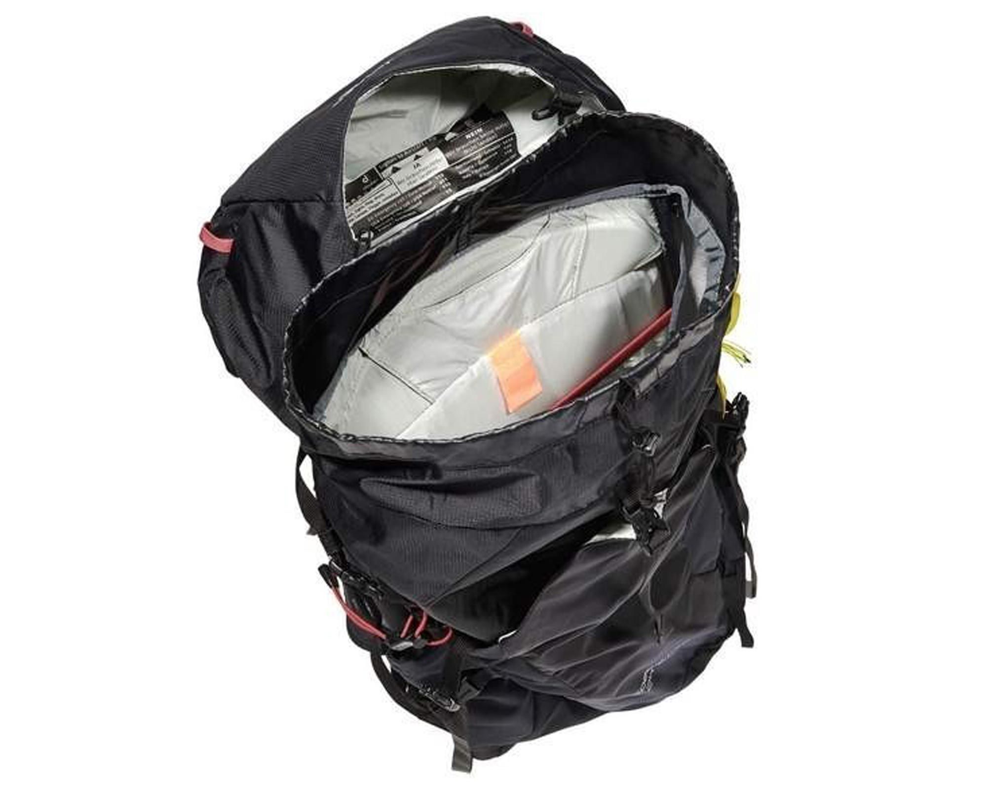 Рюкзак обладнаний петлями для льодоруба й трекінгових палиць, фронтальною еластичною кишенею, кишенею в клапані, двома кишенями в поясному ремені й компресійними стяжками. Світловідбивні логотипи покращують видимість у темну пору, а мітка SOS додає безпеки.