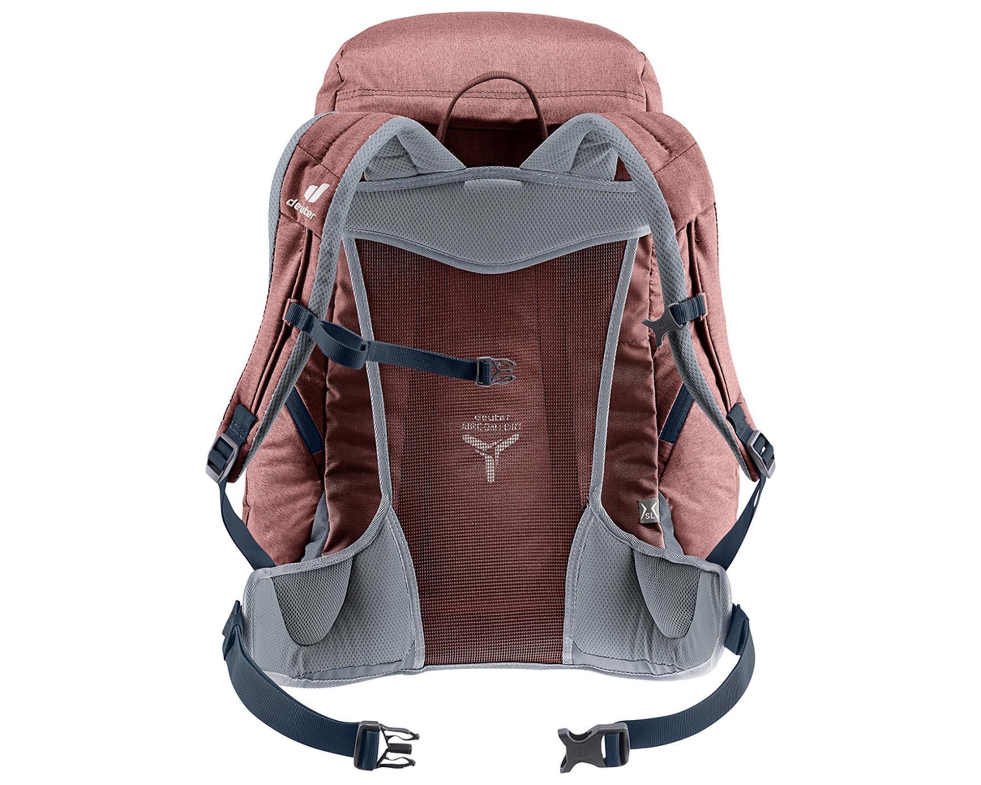 Система Deuter SL розроблена спеціально для жіночої анатомії: укорочена спинка, S-подібні плечові лямки з м’якими краями Soft-Edge, компактні крила на поясі забезпечують щільну посадку. Сітчаста спинка Aircomfort гарантує чудову вентиляцію в спекотну погоду або під час інтенсивного руху.
