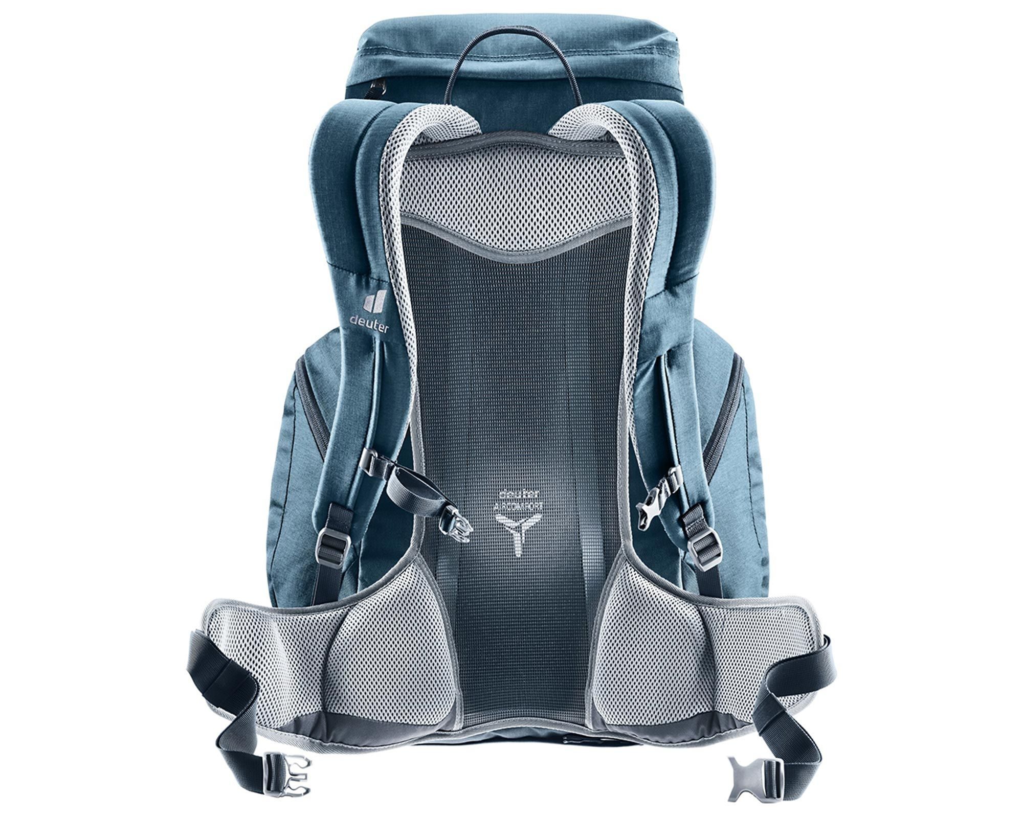 Система Deuter SL враховує особливості жіночої анатомії: укорочена спинка, вузькі лямки з м’якими краями Soft-Edge, компактні крила на стегнах — усе для зручної посадки. Завдяки системі Deuter Aircomfort спина залишається сухою навіть під час інтенсивного пересування.