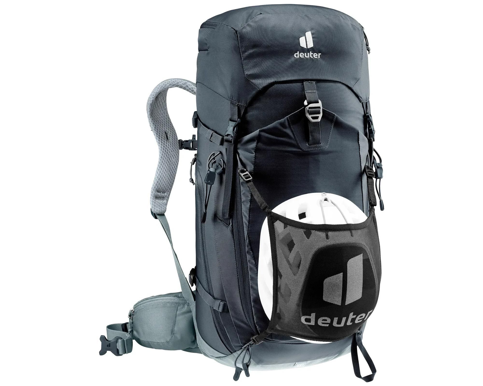Deuter Trail Pro 36 black‑shale — професійний трекінговий рюкзак на 36 л, оптимізований під маршрути via ferrata та багатоденні походи. Анатомічна посадка, надійність і зручність — ключові риси цієї моделі.