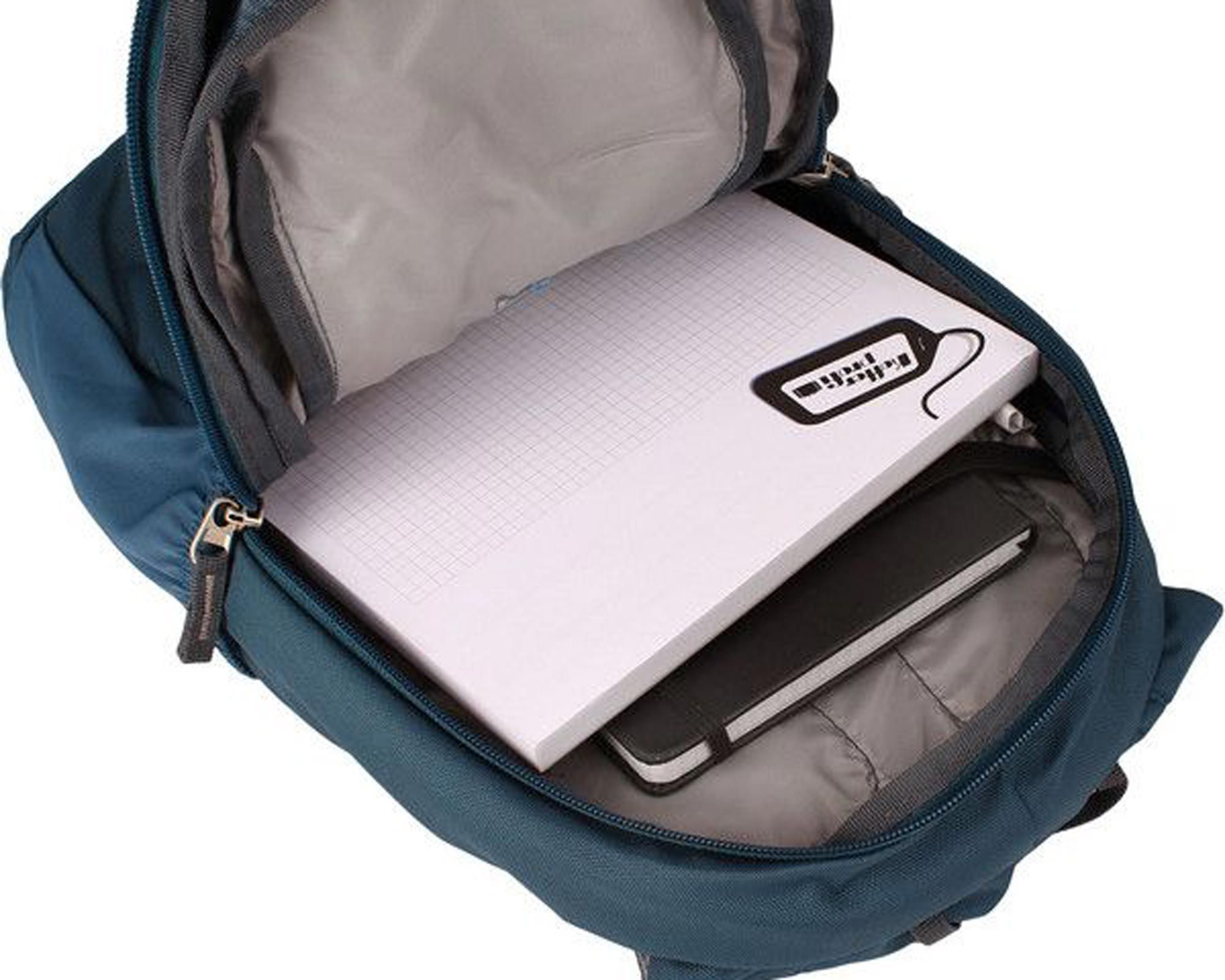 Рюкзак має просторе основне відділення з кишенею для документів на гумці, фронтальну кишеню на блискавці зі знімним карабіном для ключів і дві еластичні бічні кишені, у які зручно розміщувати пляшки з водою чи інші дрібниці. Передбачена петля для ліхтарика безпеки.