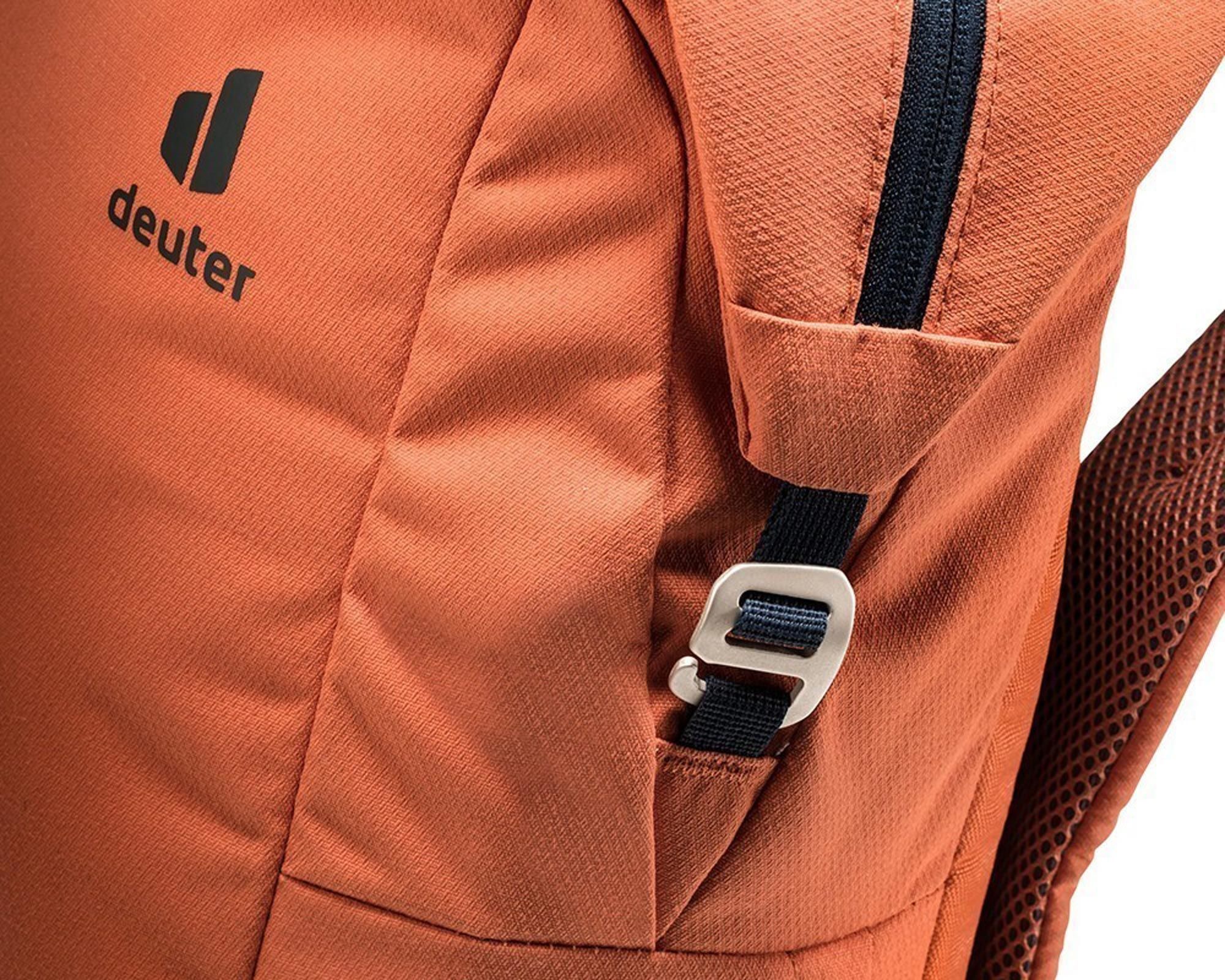 Deuter Vista Spot у кольорі sienna-marine — це практичний та легкий міський рюкзак об'ємом 18 літрів, створений для щоденного використання. Модель вирізняється чітким дизайном та продуманим функціоналом, що забезпечує зручне розміщення всіх необхідних речей. Для смартфона передбачена спеціальна кишеня ззаду, пляшка з водою чи парасолька легко поміщаються в еластичні бічні кишені, а важливі документи та канцелярію можна організувати у внутрішньому відділенні з органайзером.