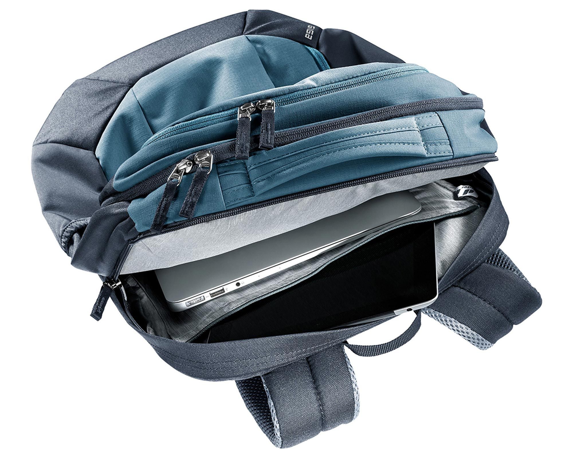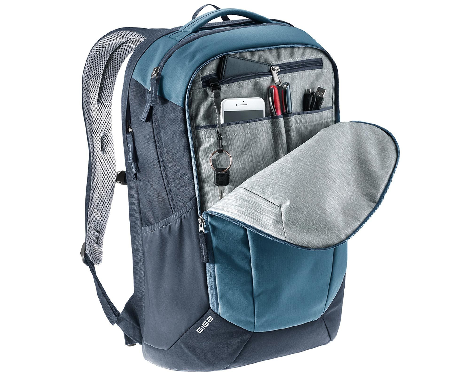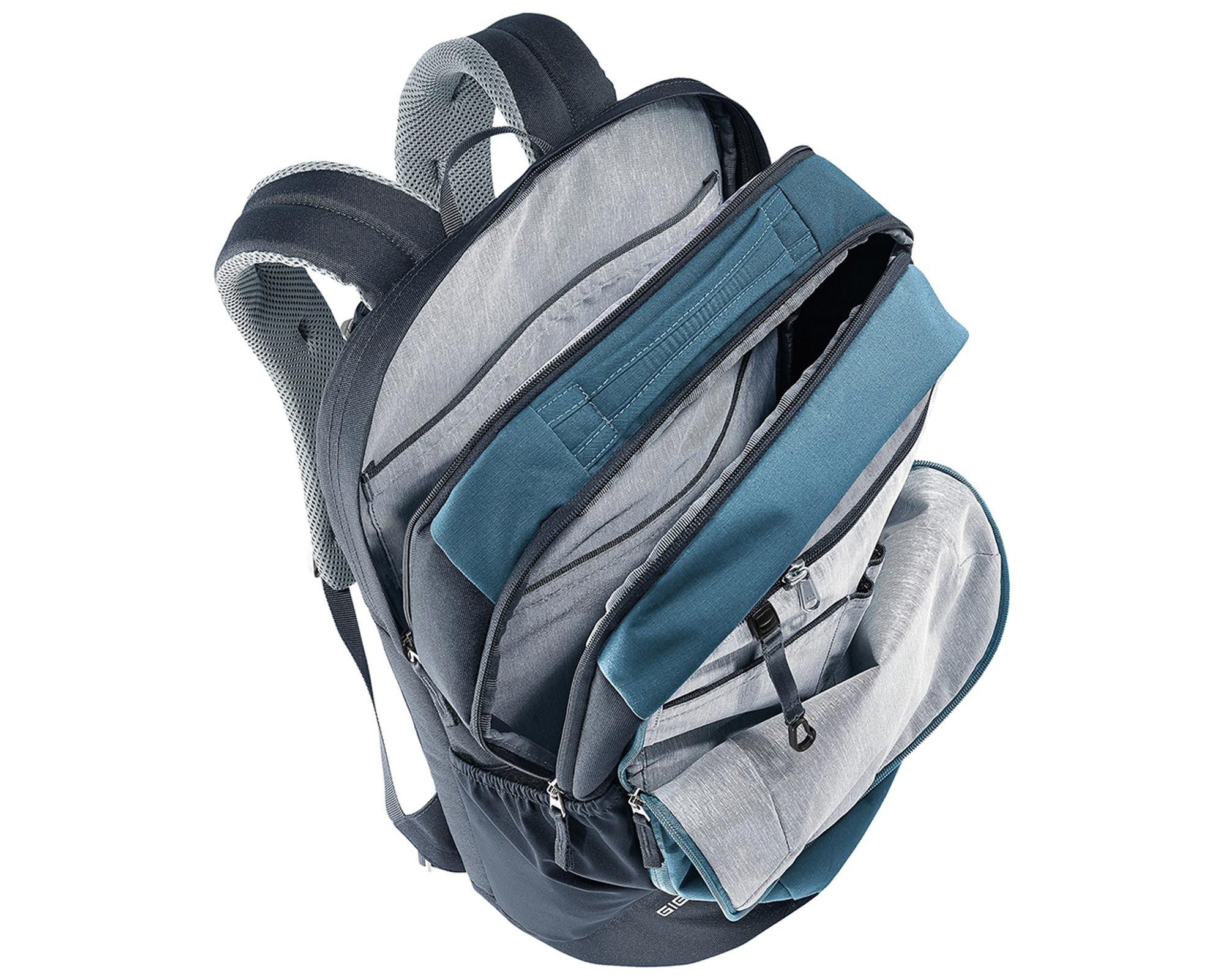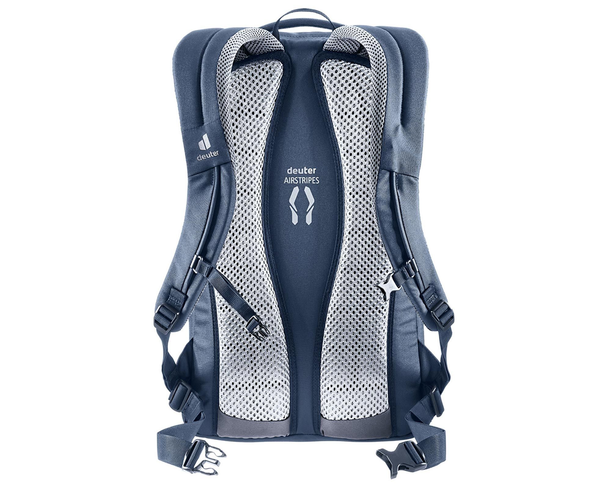 Deuter Giga atlantic-ink — універсальний міський рюкзак, створений для тих, хто цінує комфорт, функціональність та стиль. Система спинки Airstripes з двома вертикальними вентиляційними вставками забезпечує відмінну циркуляцію повітря та мінімізує площу контакту зі спиною, знижуючи потовиділення навіть у спеку. Ергономічні м’які лямки, регульований нагрудний ремінь і знімний поясний ремінь рівномірно розподіляють вагу та забезпечують стабільну посадку.