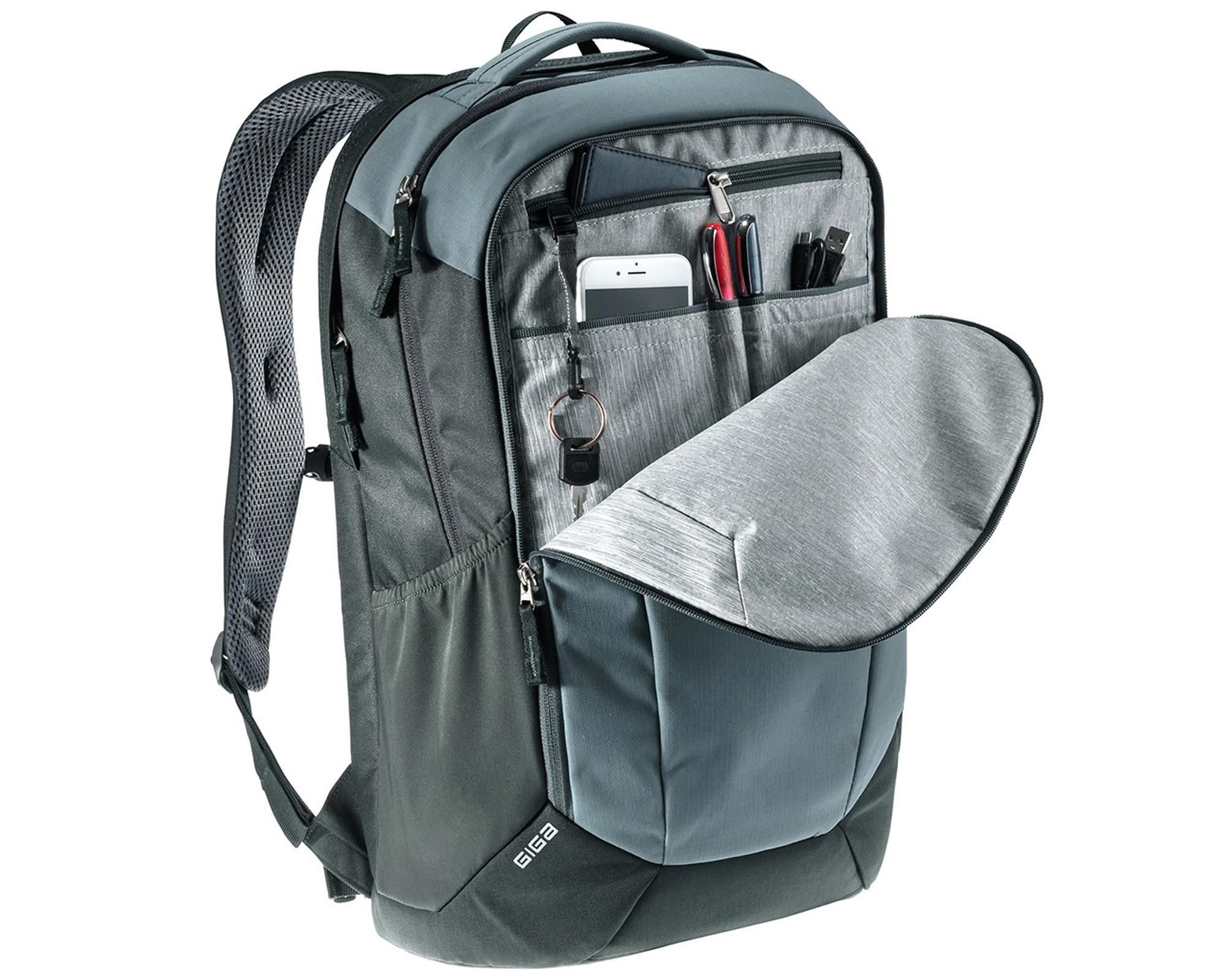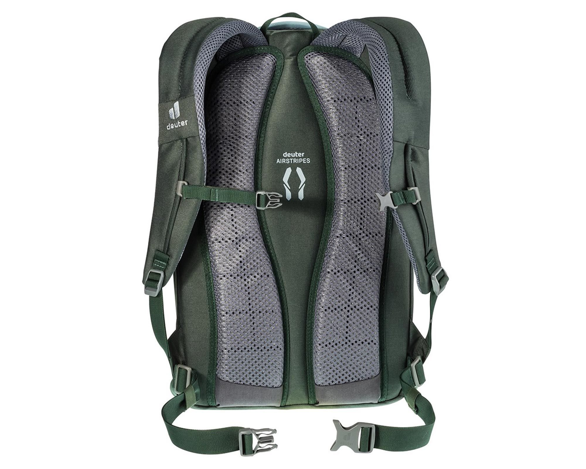 Deuter Giga jade-seagreen — універсальний рюкзак для активного міського життя, що поєднує місткість, комфорт і довговічність. Система спинки Airstripes з двома вертикальними вентиляційними вставками забезпечує оптимальну циркуляцію повітря та зменшує площу контакту зі спиною, знижуючи потовиділення навіть під час тривалого носіння. М’які ергономічні лямки, регульований нагрудний ремінь і знімний поясний ремінь гарантують рівномірний розподіл ваги та зручну посадку.