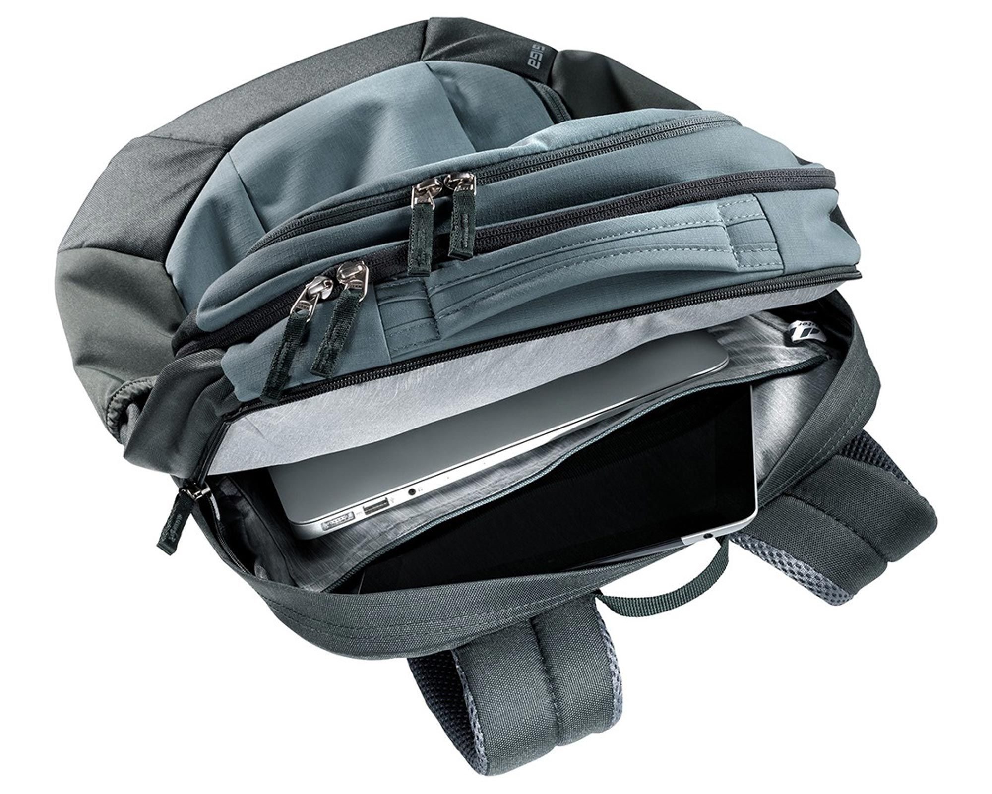 Deuter Giga teal-ivy — практичний і універсальний рюкзак, створений для активного міського ритму життя. Система спинки Airstripes з двома вертикальними вентиляційними вставками забезпечує стабільну посадку та чудову вентиляцію, зменшуючи площу контакту зі спиною і мінімізуючи потовиділення. Ергономічні м’які плечові лямки, регульований нагрудний ремінь та знімний поясний ремінь гарантують рівномірний розподіл навантаження навіть при повному завантаженні.