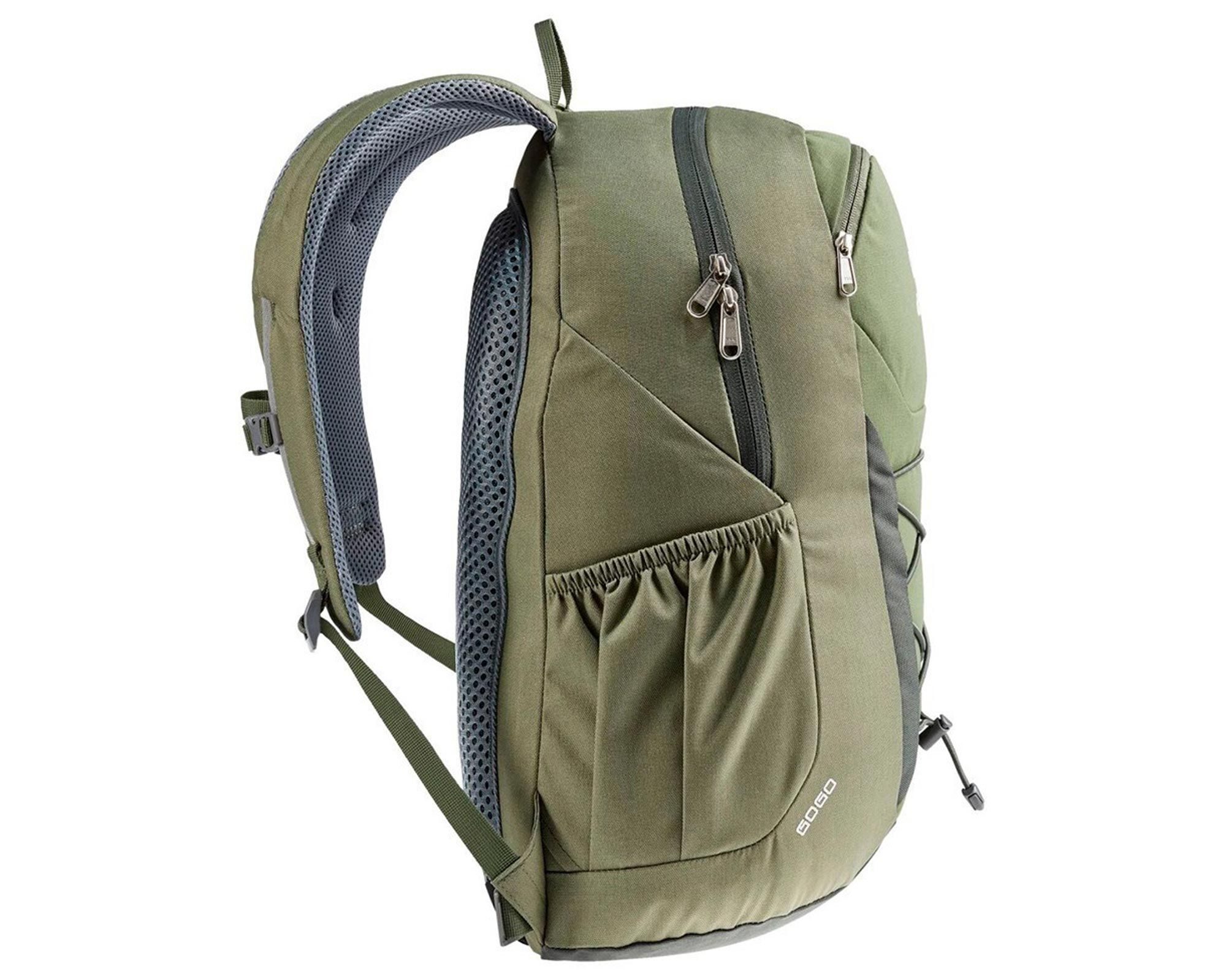Deuter Gogo khaki-ivy — універсальний міський рюкзак, створений для активного щоденного використання. Завдяки міцному матеріалу з водо- та брудовідштовхувальним покриттям DWR, що не містить PFC, він зберігає свій вигляд навіть після інтенсивної експлуатації. Ергономічна спинка з двома вертикальними вентильованими вставками зменшує площу контакту зі спиною, забезпечуючи циркуляцію повітря та комфорт у спекотну погоду.