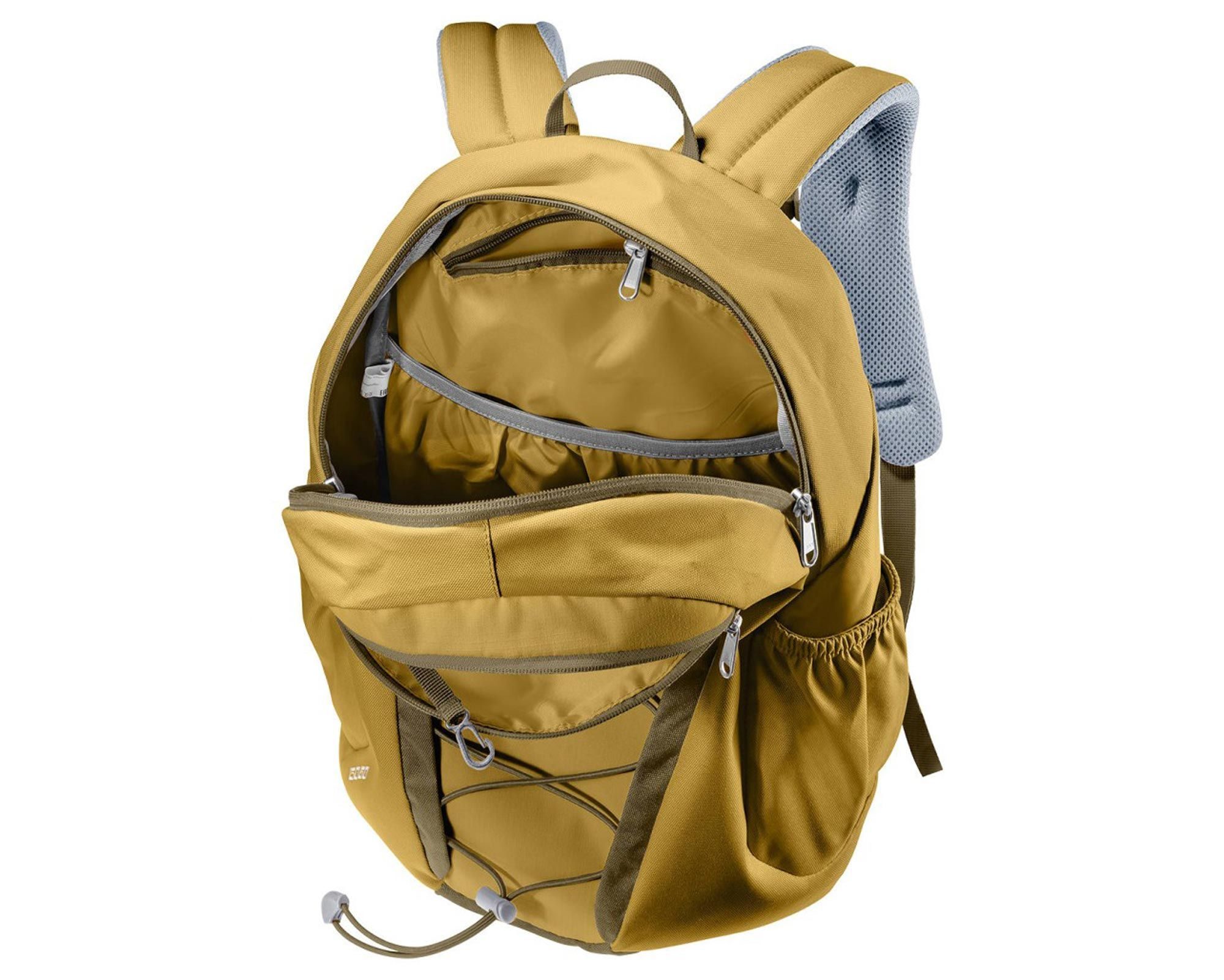 Головне відділення з двосторонньою блискавкою підходить для папок формату А4 та має окремий відсік для документів і кишеню для цінних речей. На передній панелі розташована зовнішня кишеня з тримачем для ключів, а еластичні бічні кишені дозволяють зручно зберігати пляшки з водою. Додатковий фронтальний еластичний шнур служить для фіксації куртки чи іншого легкого спорядження. Рюкзак оснащений оновленим логотипом Deuter і зберігає форму та колір навіть після тривалого використання.