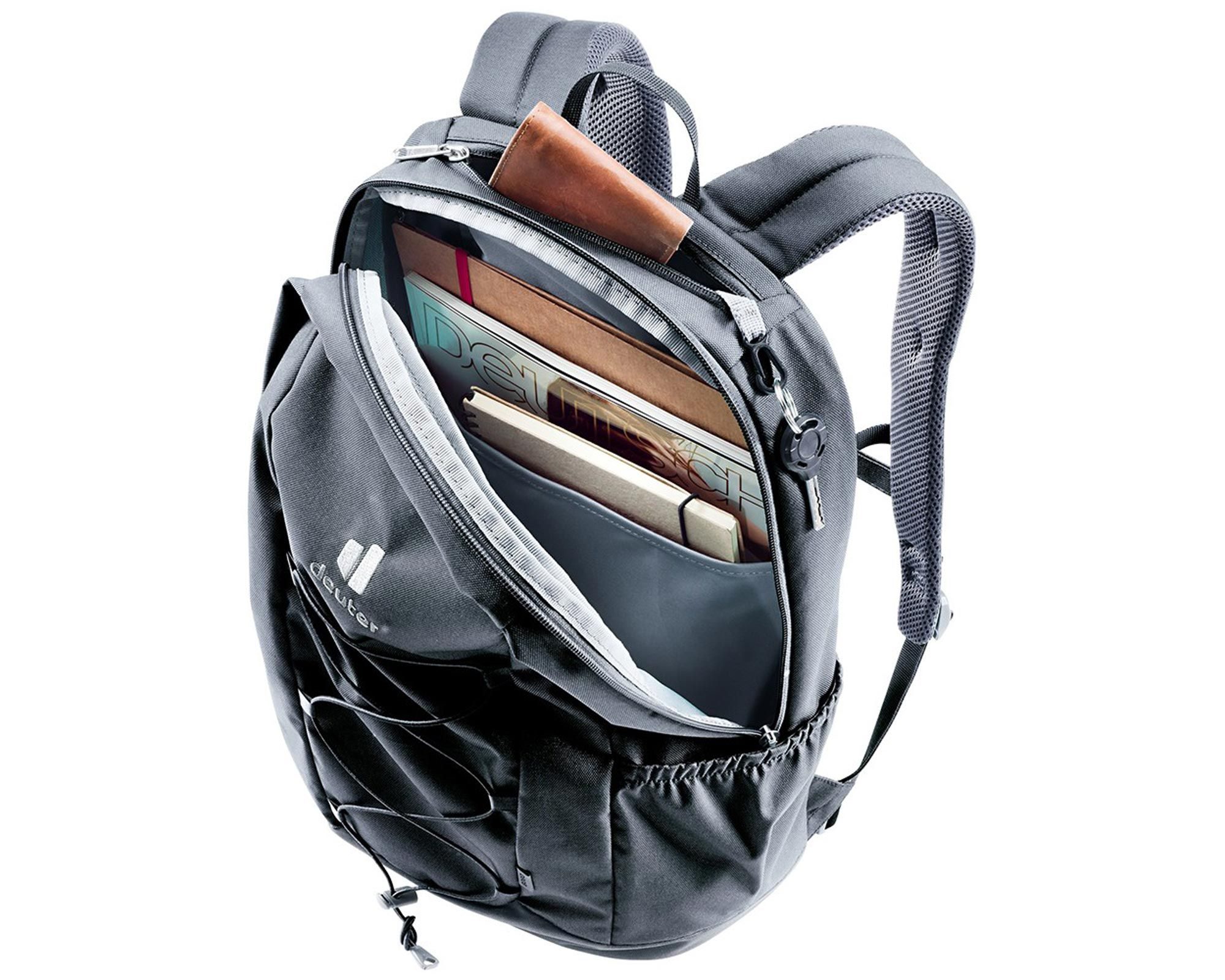 Deuter Gogo у класичному чорному кольорі — універсальний рюкзак об’ємом 25 літрів, створений для активного міського життя. Завдяки великому U-подібному входу на блискавці ви отримуєте швидкий доступ до основного відділення, а внутрішні органайзери допомагають тримати речі впорядкованими.