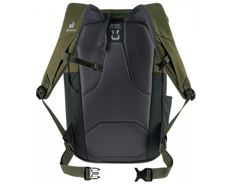 Deuter UP Seoul у кольорі ivy-khaki – це універсальний міський рюкзак із можливістю регулювання обʼєму від 16 до 26 літрів, що робить його зручним як для роботи чи навчання, так і для подорожей. Ергономічна система спинки Contact забезпечує рівномірний розподіл ваги та оптимальну вентиляцію завдяки дихаючій підкладці 3D Airmesh і спеціальним повітряним каналам.