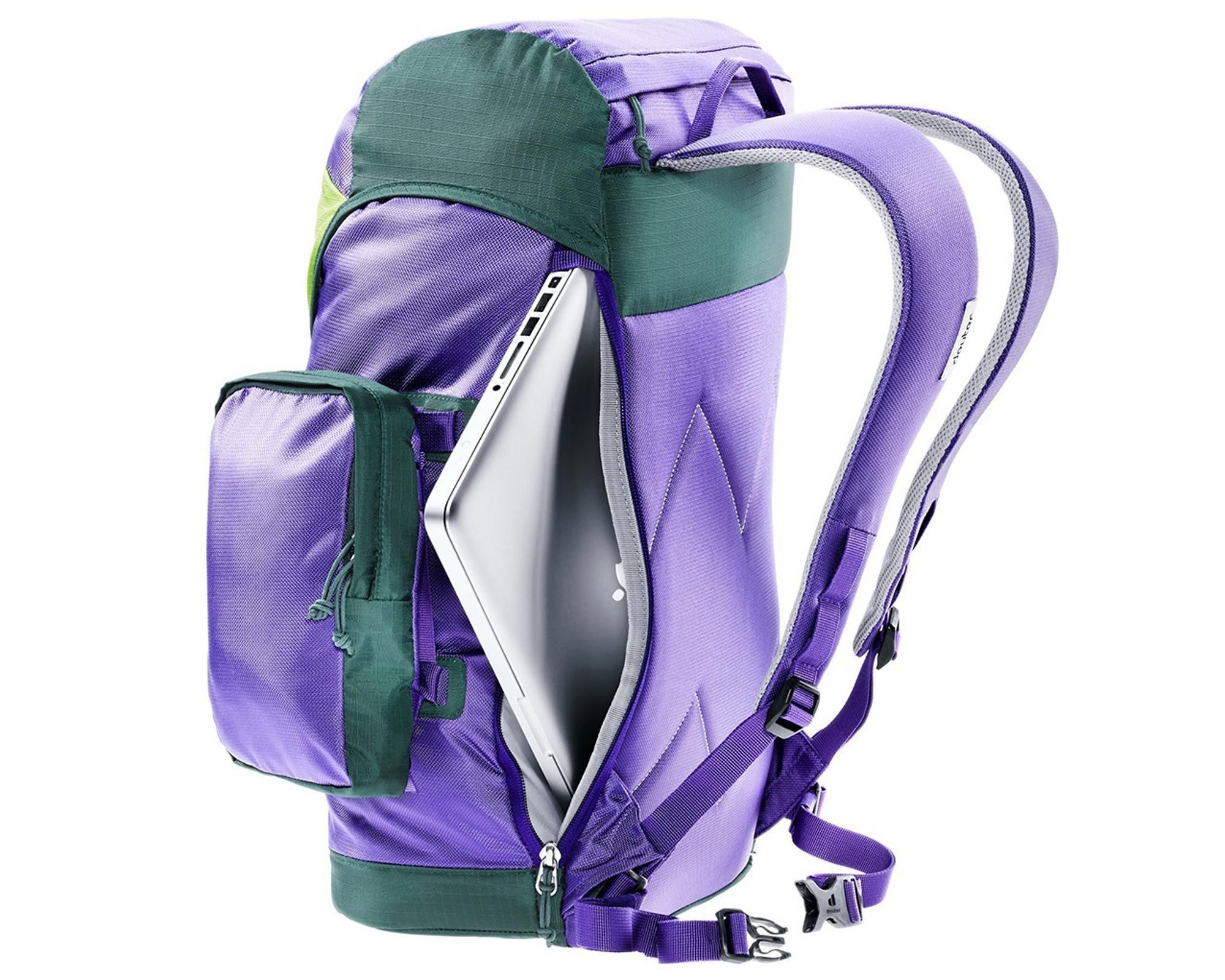 Deuter Lake Placid у кольорі violet-citrus — це місткий і зручний міський рюкзак у ретро-стилі 90-х, створений для активного повсякденного використання. Об’єм 27 літрів дозволяє легко розмістити ноутбук до 15'', документи, пляшку з водою та інші необхідні речі.