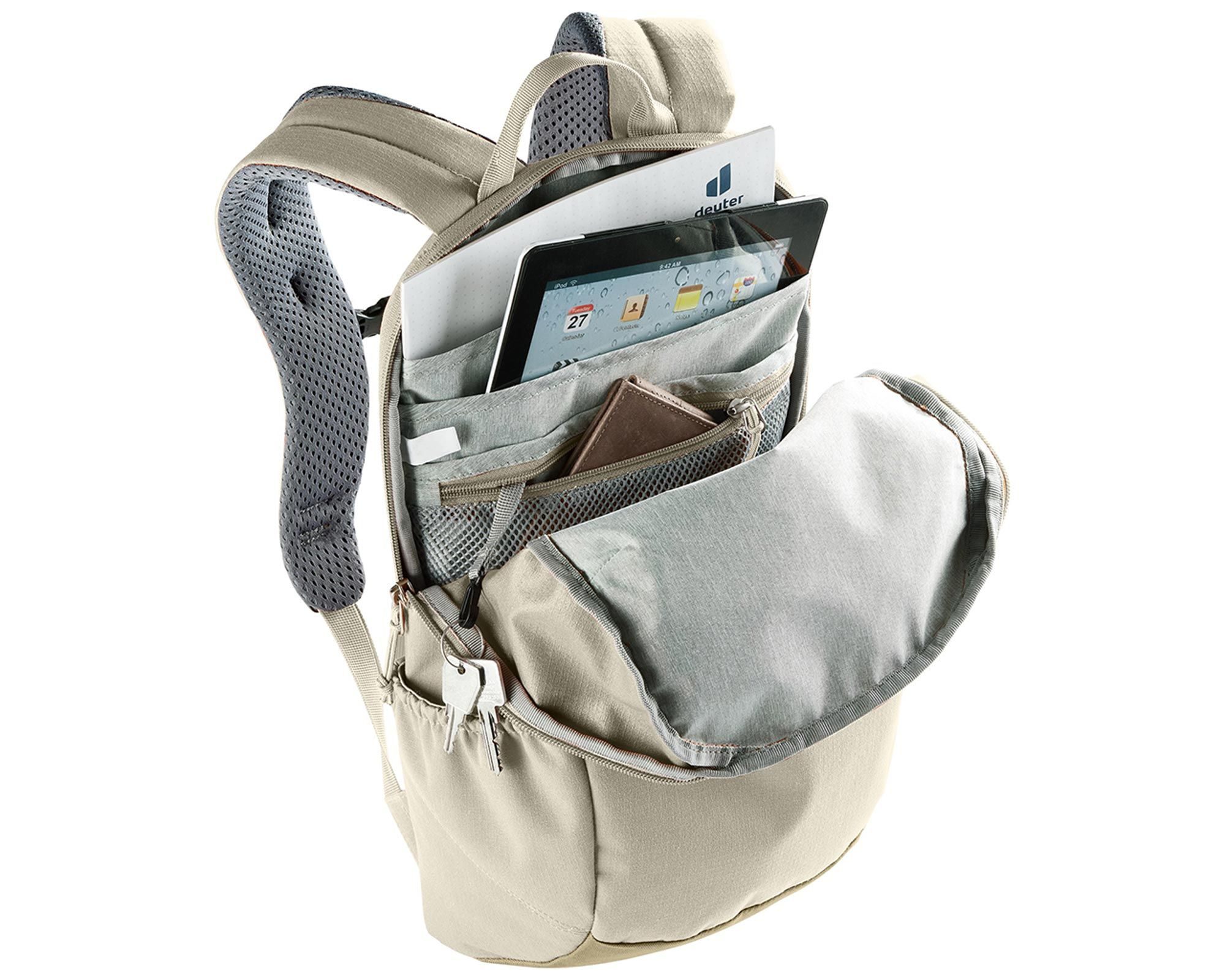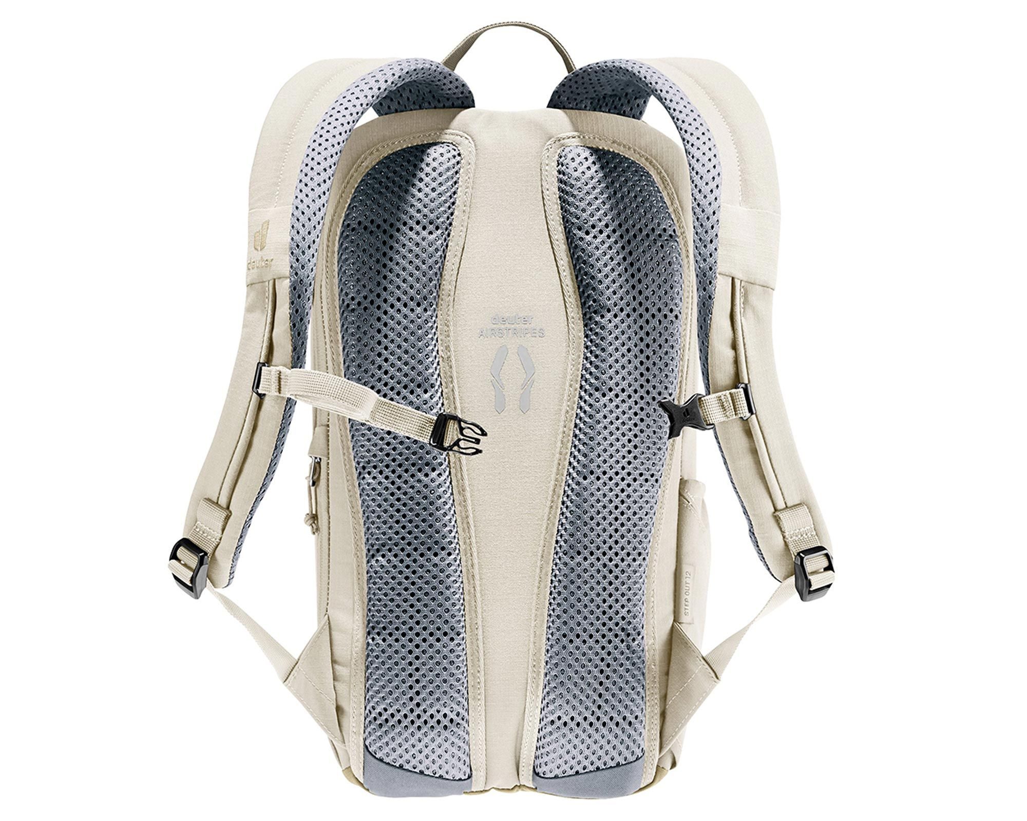 Deuter StepOut 12 у відтінку bone-desert — це компактний і зручний рюкзак для міського використання, роботи, навчання чи подорожей. Система спинки Airstripes з ергономічними перфорованими лямками зменшує контактну поверхню зі спиною, забезпечуючи ефективну вентиляцію та комфорт під час носіння.