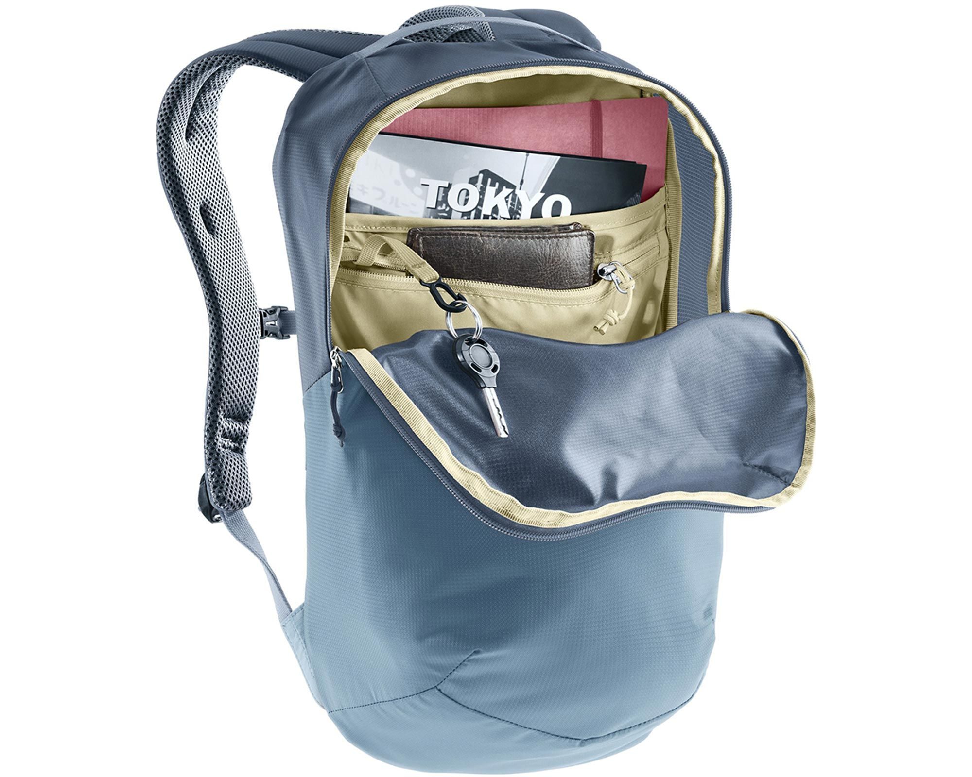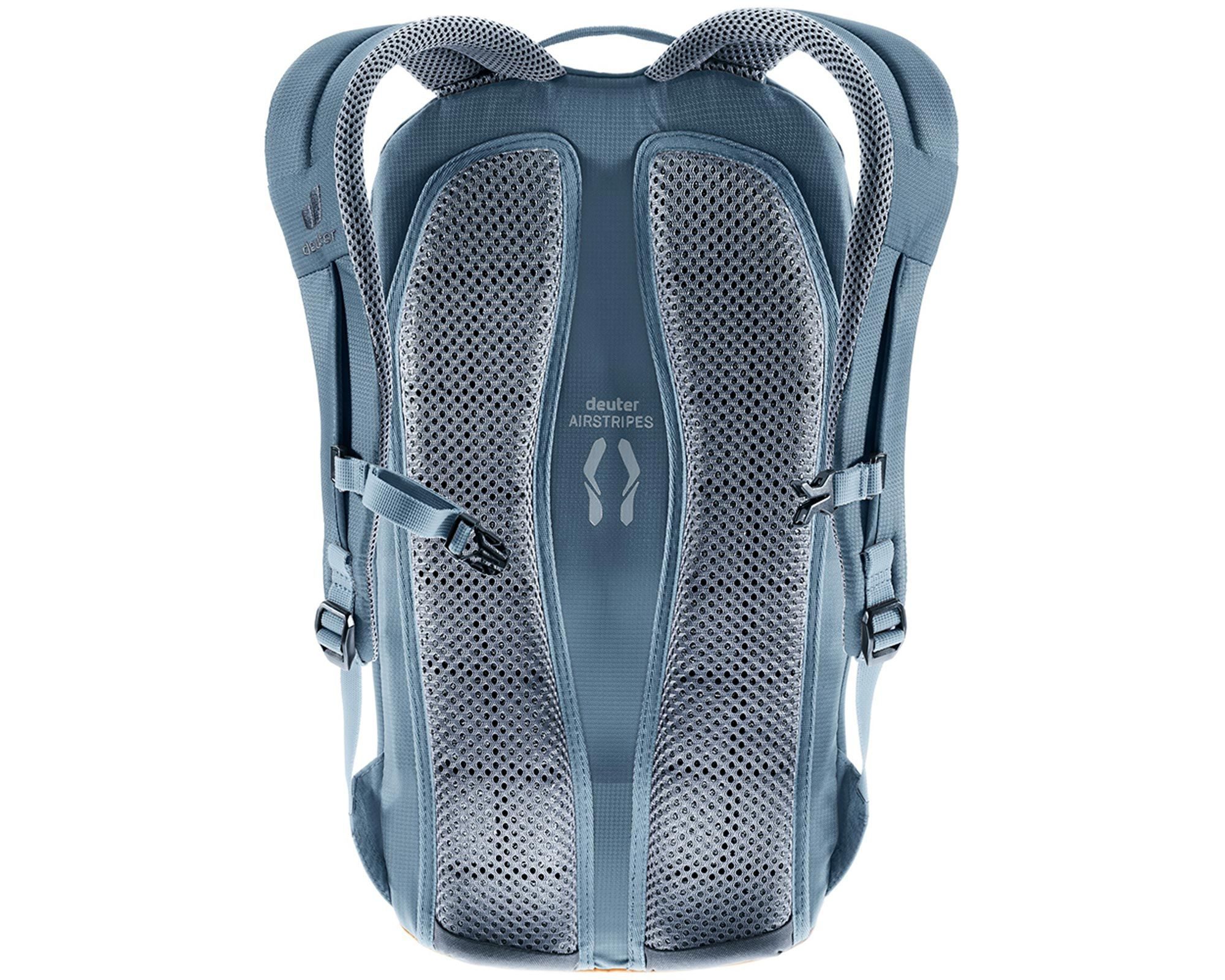 Deuter Yort 15 у поєднанні кольорів atlantic-ink — це стильний та зручний міський рюкзак, створений для активних людей, які цінують комфорт та функціональність. Система Airstripes зі зменшеною площею контакту забезпечує чудову вентиляцію спини, а ергономічні мʼякі лямки та регульований у двох напрямках грудний ремінь гарантують комфорт протягом дня.