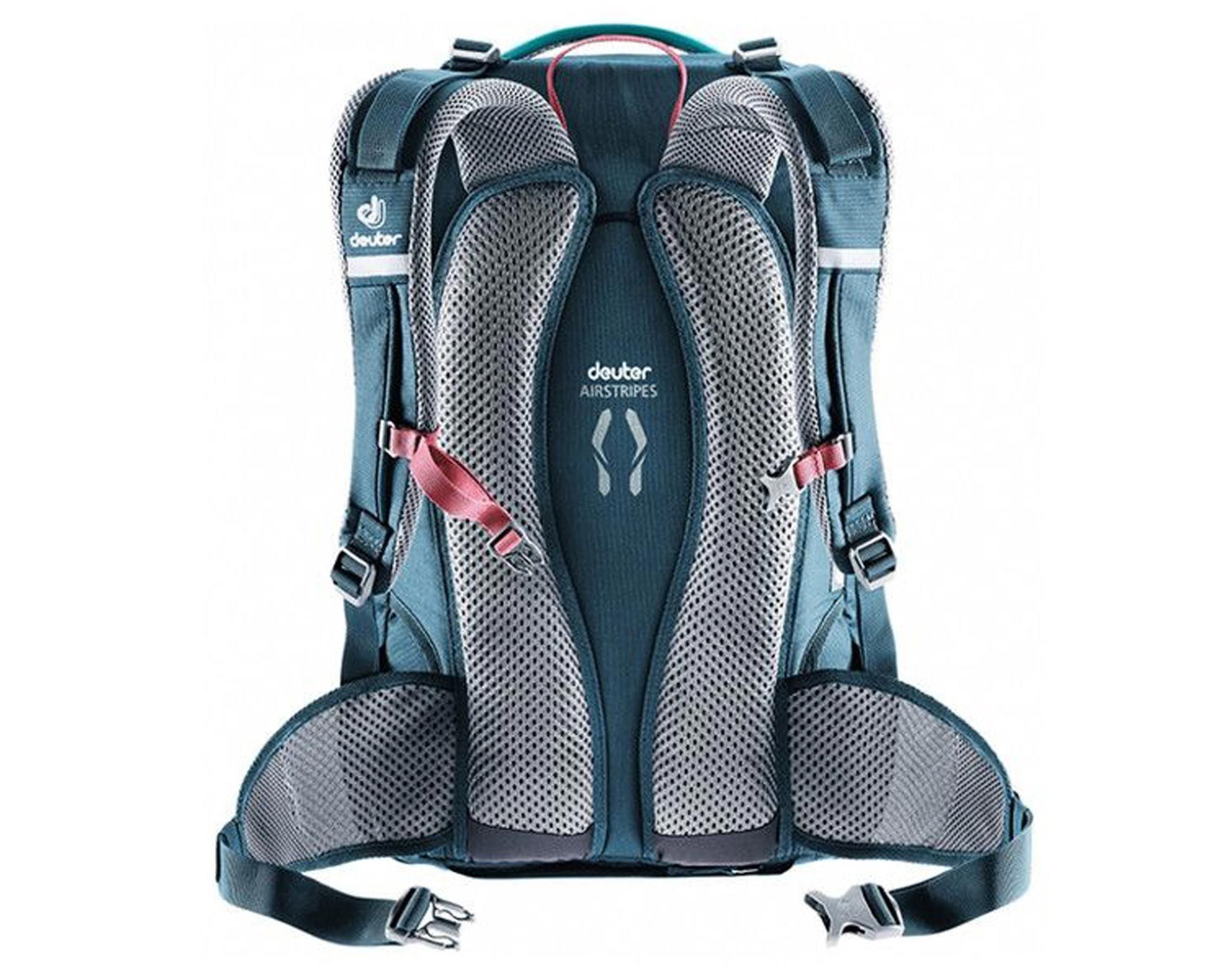 Deuter Giga Bike SL petrol-arctic — універсальний жіночий рюкзак, створений для активних велосипедисток і міського життя. Серія SL спеціально адаптована до анатомії жінок: коротша спинка, вужчі лямки та конічні стегнові плавці забезпечують комфорт і щільну посадку. Система Airstripes із вентиляційними каналами зменшує контакт із тілом і покращує повітрообмін, що знижує нагрівання спини навіть під час інтенсивних поїздок.