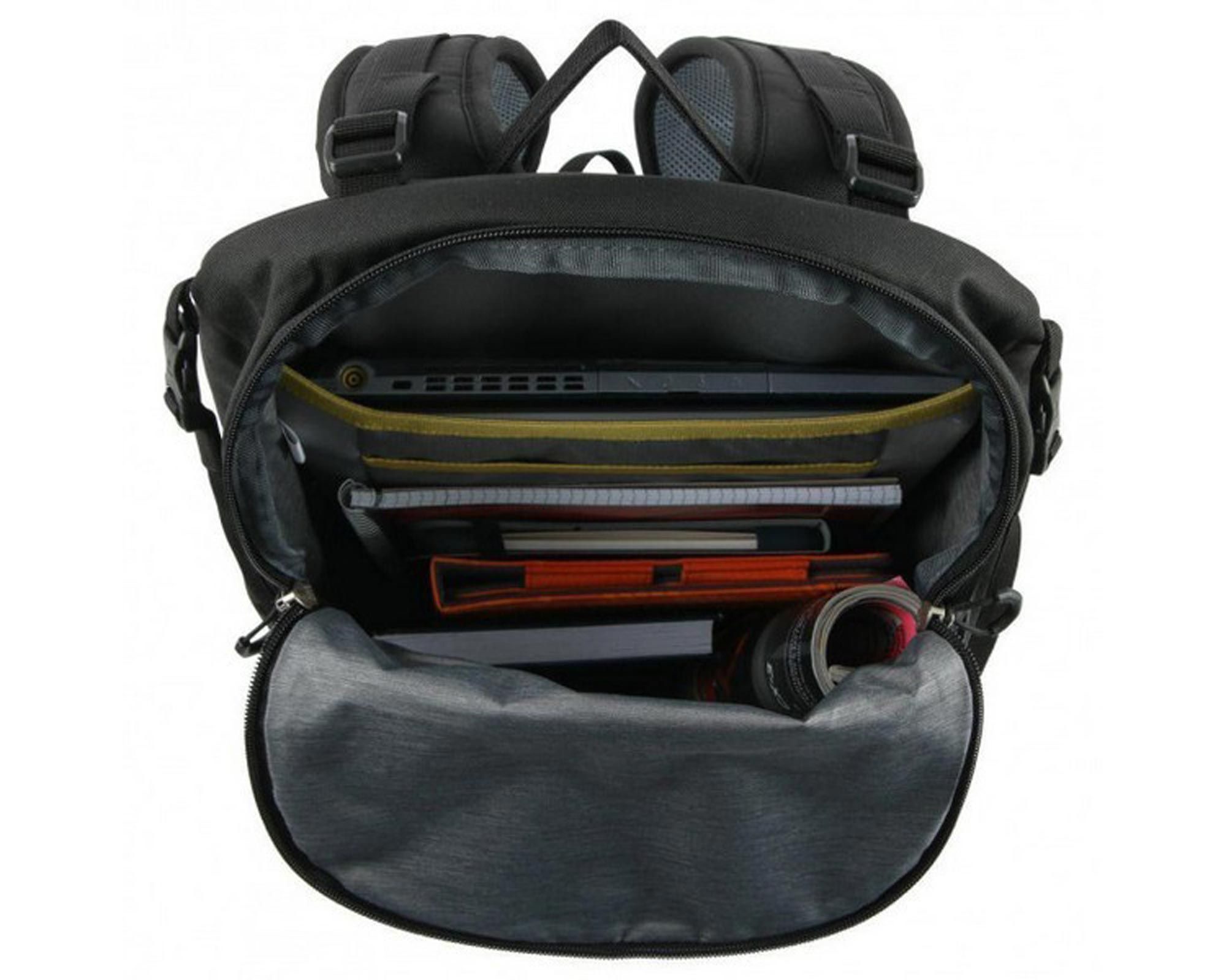 | Особливості | укорочена спинка та вузькі лямки (SL), верх із закруткою, відділення для ноутбука 15,6’’ та планшета, сітчастий органайзер, еластичні бічні та фронтальна кишені, прихована кишеня для цінностей, зʼємний поясний ремінь, світловідбиваючі елементи, водо- та брудовідштовхувальне просочення |