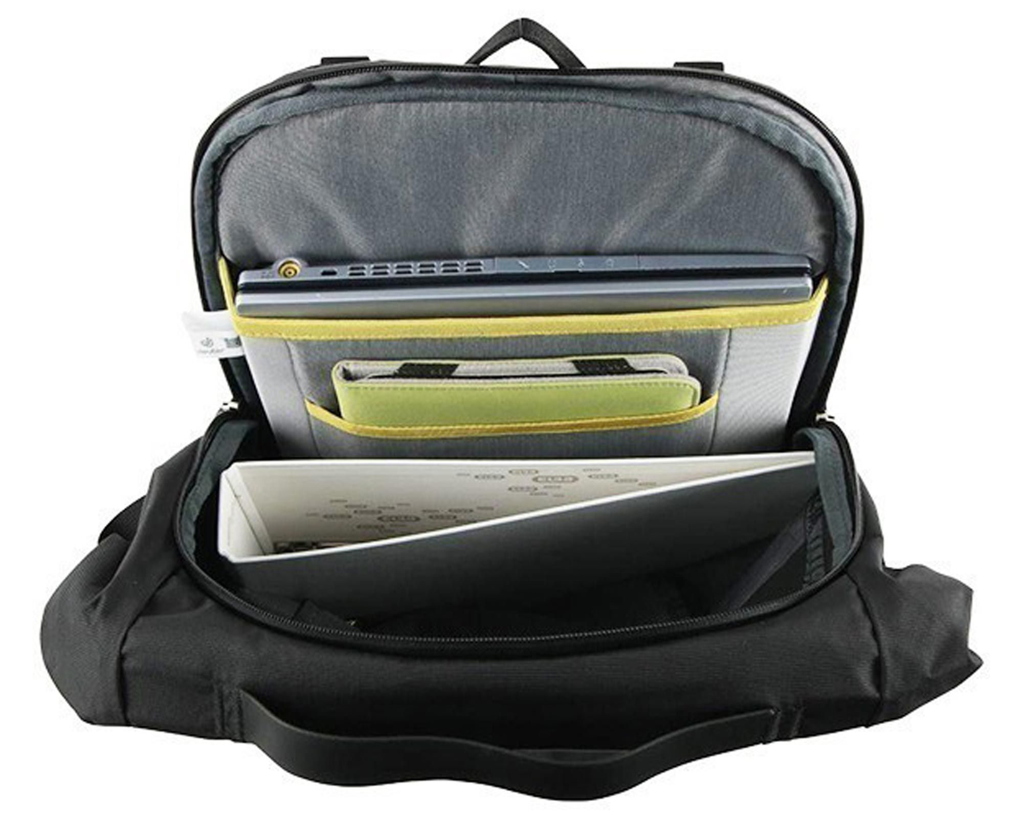 Основне відділення має окремий відсік з флісовою підкладкою для ноутбука до 15,6" і планшета, до якого можна дістатися як через верхній вхід, що згортається, так і через водонепроникну блискавку. Є обʼємна фронтальна кишеня з органайзером, карабін для ключів та міцна ручка для перенесення. Матеріали з водо- та брудовідштовхувальним просоченням, без використання перфторованих з'єднань, роблять модель довговічною та безпечною для довкілля.