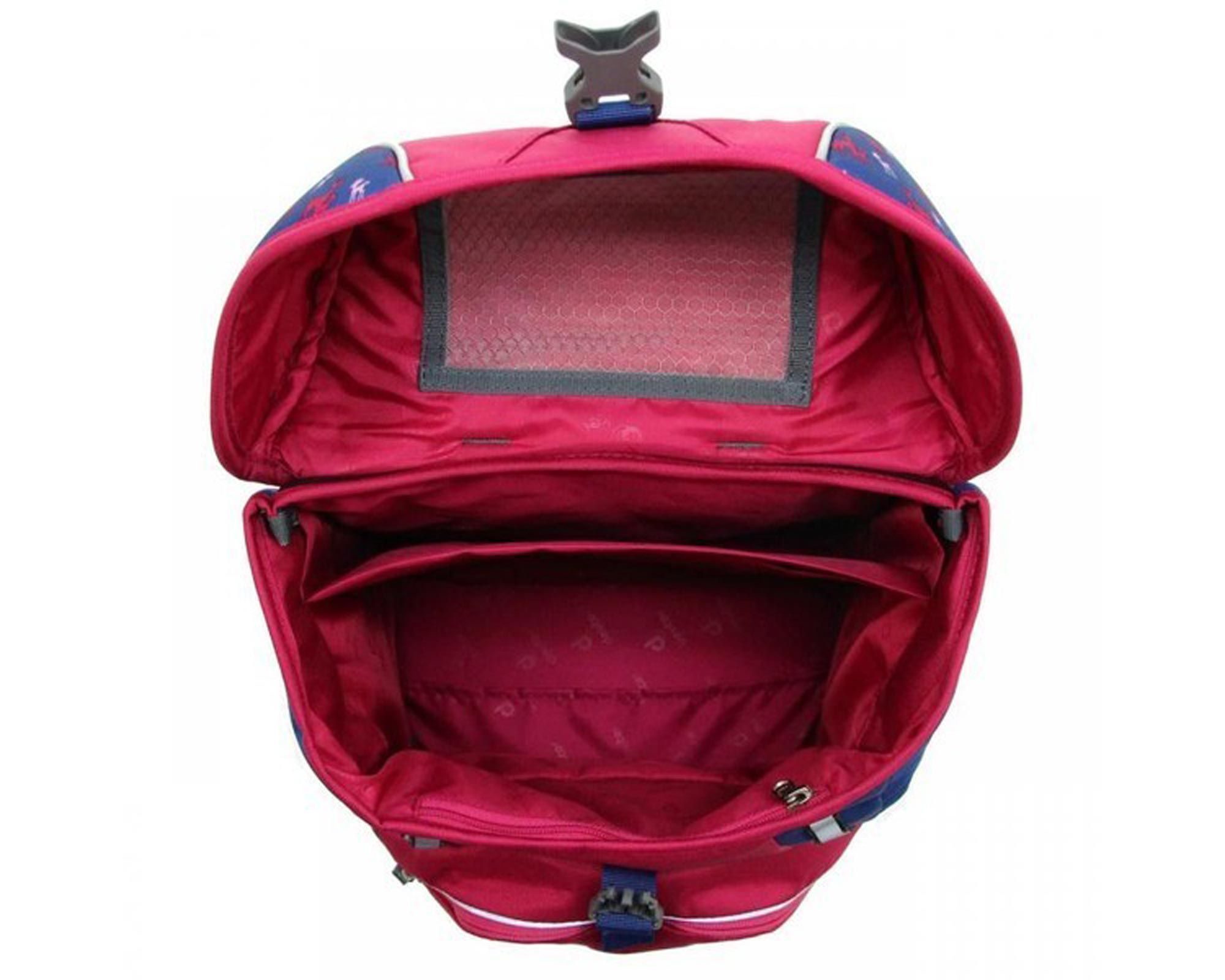 Дизайн “magenta deer” виконаний із міцного поліестеру (600D) з PU‑покриттям. Рюкзак і аксесуари мають численні світловідбиваючі елементи для підвищення видимості дитини у сутінках.
