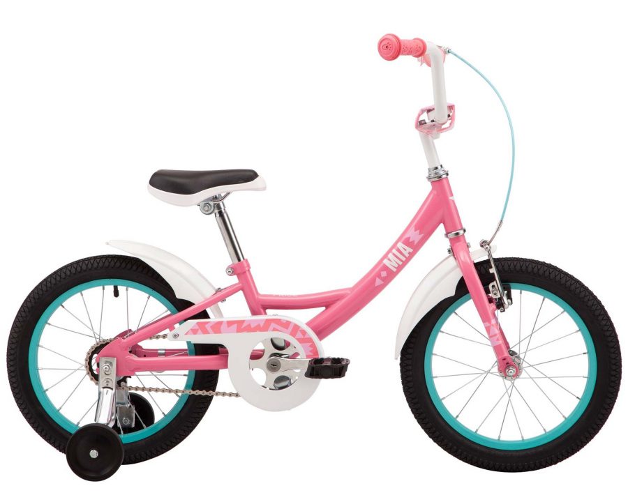 Pride Mia 16 – яркий и очень удобный велосипед для девчонок с ростом 90-110 см. Он имеет очень привлекательную расцветку и ряд технических решений, которые помогают быстро и безопасно научиться ездить на велосипеде.